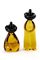 Due sculture raffiguranti messicani. Murano, seconda metà secolo XX. Vetro massello ambra trasparente e ametista scuro. Etichetta cartacea sotto la base. (h max cm 28)