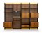 Libreria a quattro campate, quattro stipi, cassetto, piano a giorno e vetrina. Cantù, anni '50. Legno impiallacciato e bordato. (cm 268x214x43) (difetti e mancanze)