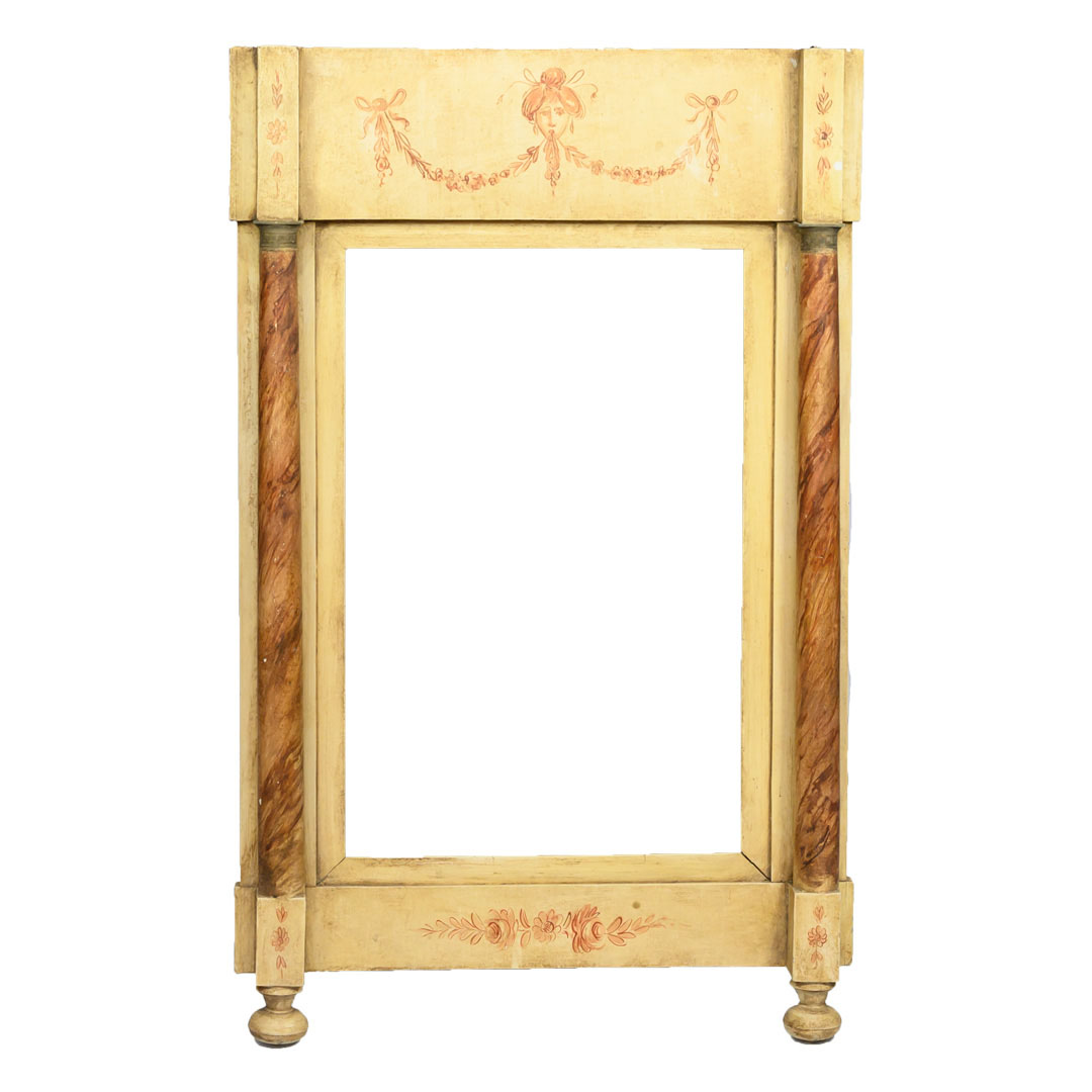 in legno laccato color avorio, luce interna incorniciata da colonne in legno marmorizzato con capitelli in bronzo, decorata a motivi fitomorfi, difetti