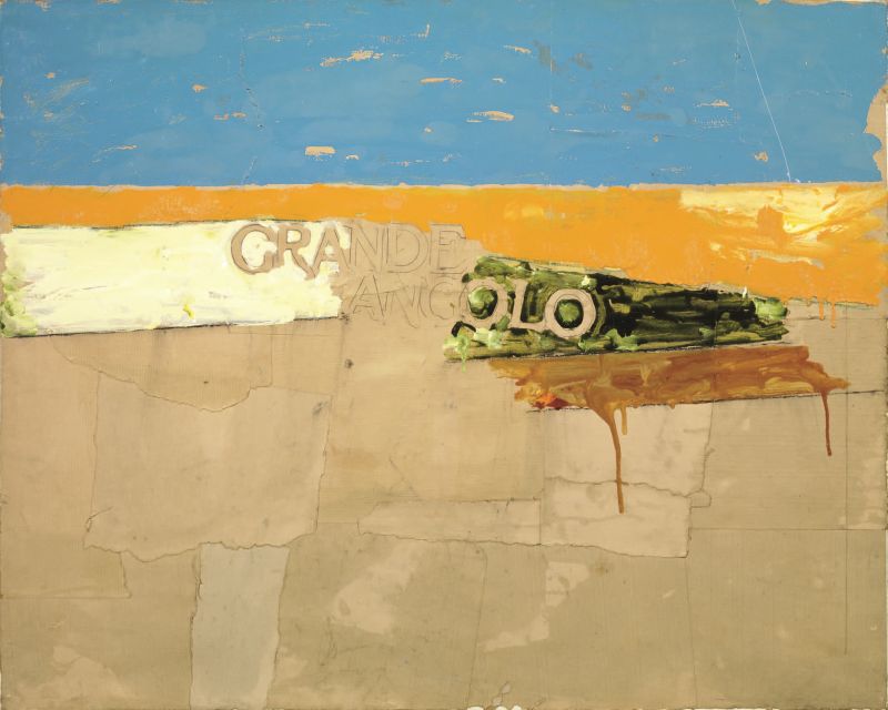 Mario Schifano Homs 1934 - Roma 1998 Grande angolo, fine anni Settanta Smalto su carta applicata su tela, cm. 80x100 Firma e titolo al verso sulla tela: Schifano / "Grande angolo". Parere favorevole Fondazione MS Multistudio.