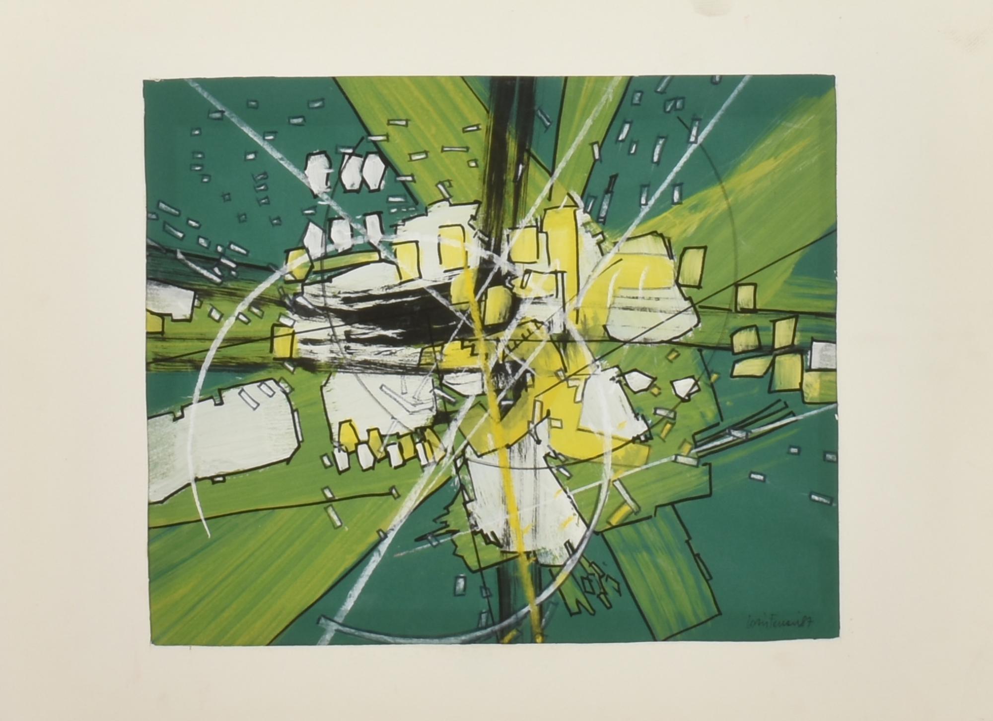 Loris Ferrari COMPOSIZIONE tempera e gesso su carta, cm 30x36 firma e data...