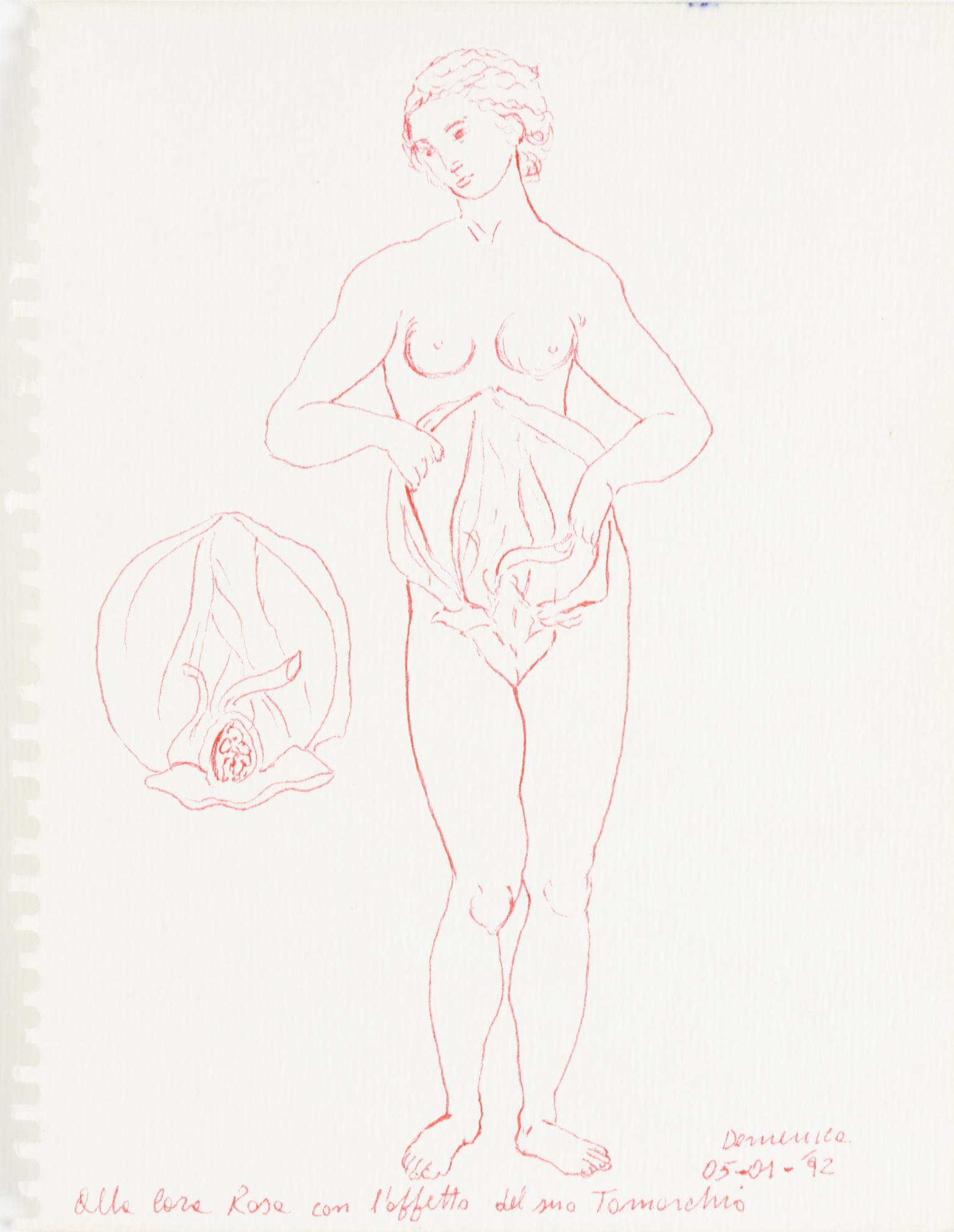 Michelangelo Tomarchio Levi NUDO FEMMINILE penna rossa su carta, cm 16x12...