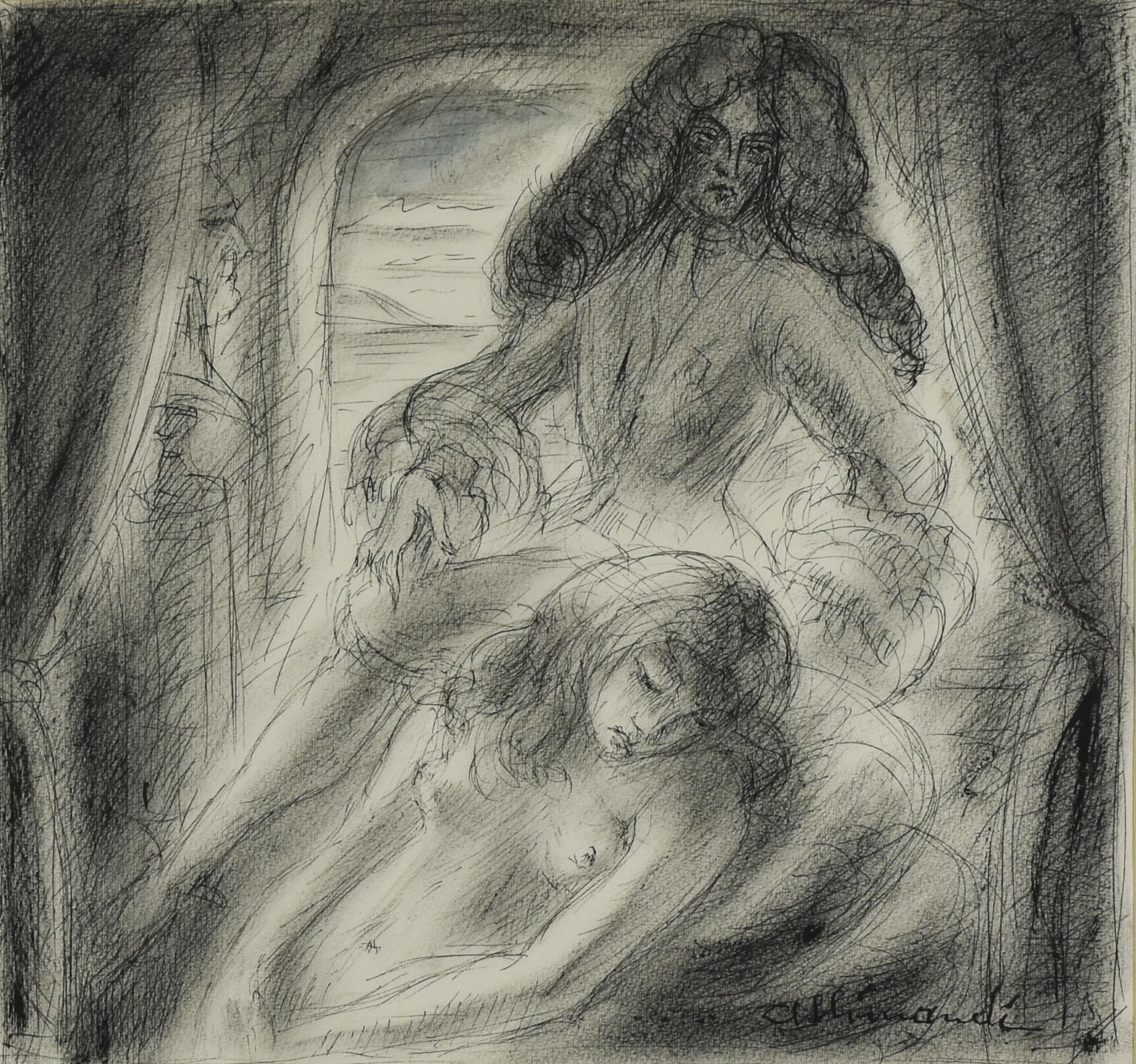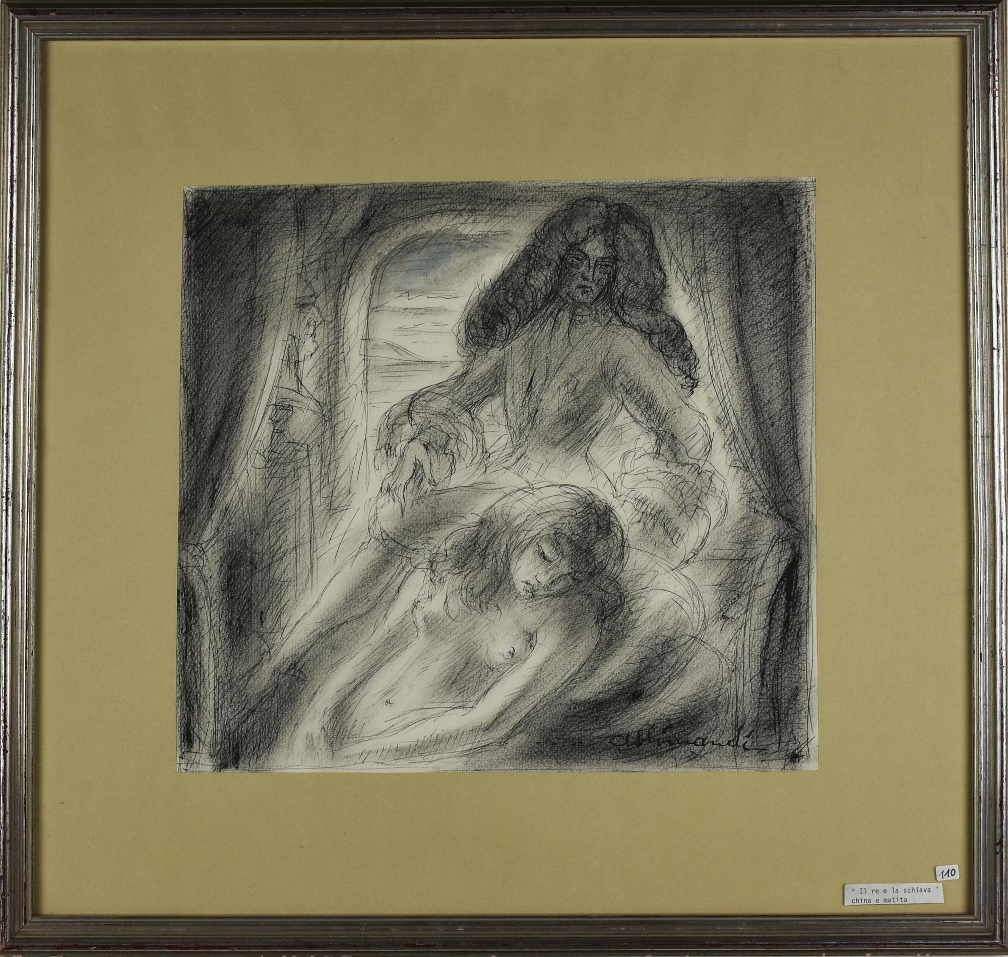 Lotto 34 | Enrico Allimandi IL RE E LA SCHIAVA china e matita su carta, cm 32x34 firma...