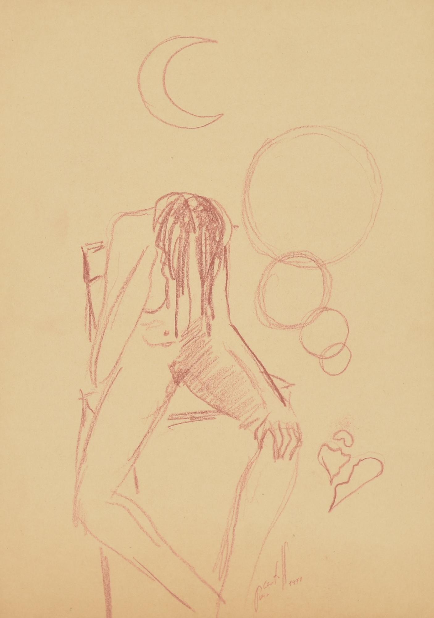 Piero Cerato NUDO SEDUTO sanguigna su carta, cm 35x25 firma e data eseguita...