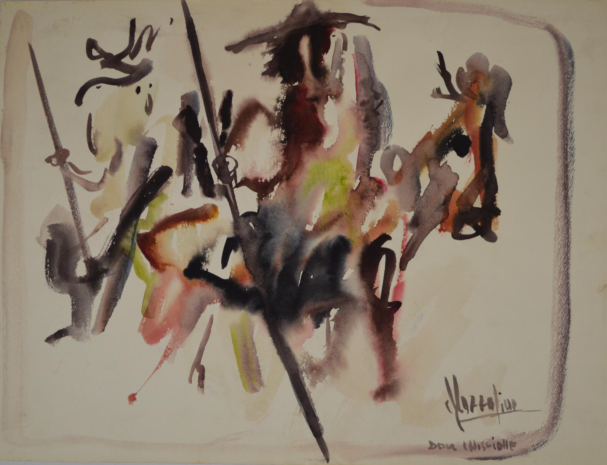Lotto 97 | Ignoto DON CHISCIOTTE goauche su cartone, cm 34,5x46,5