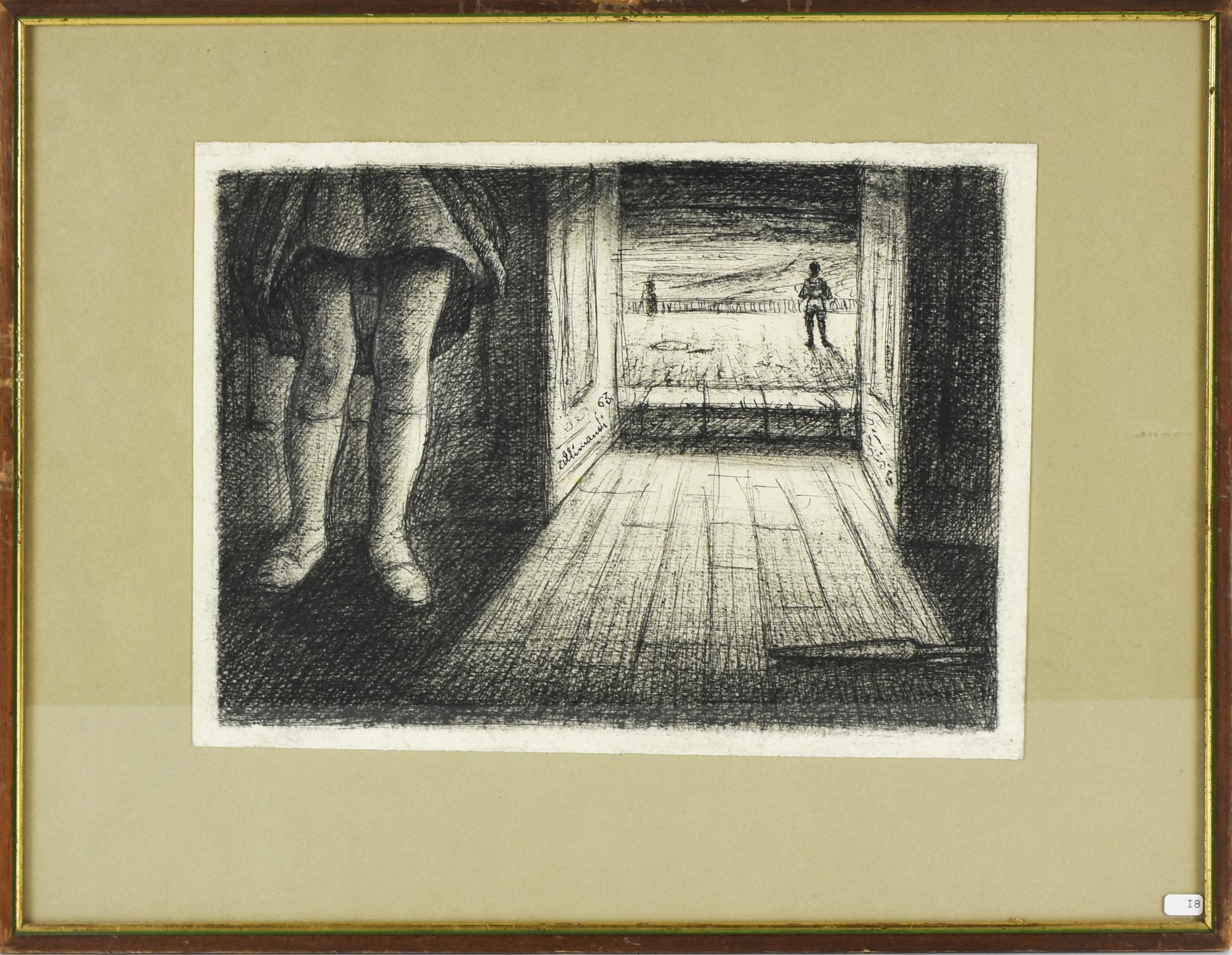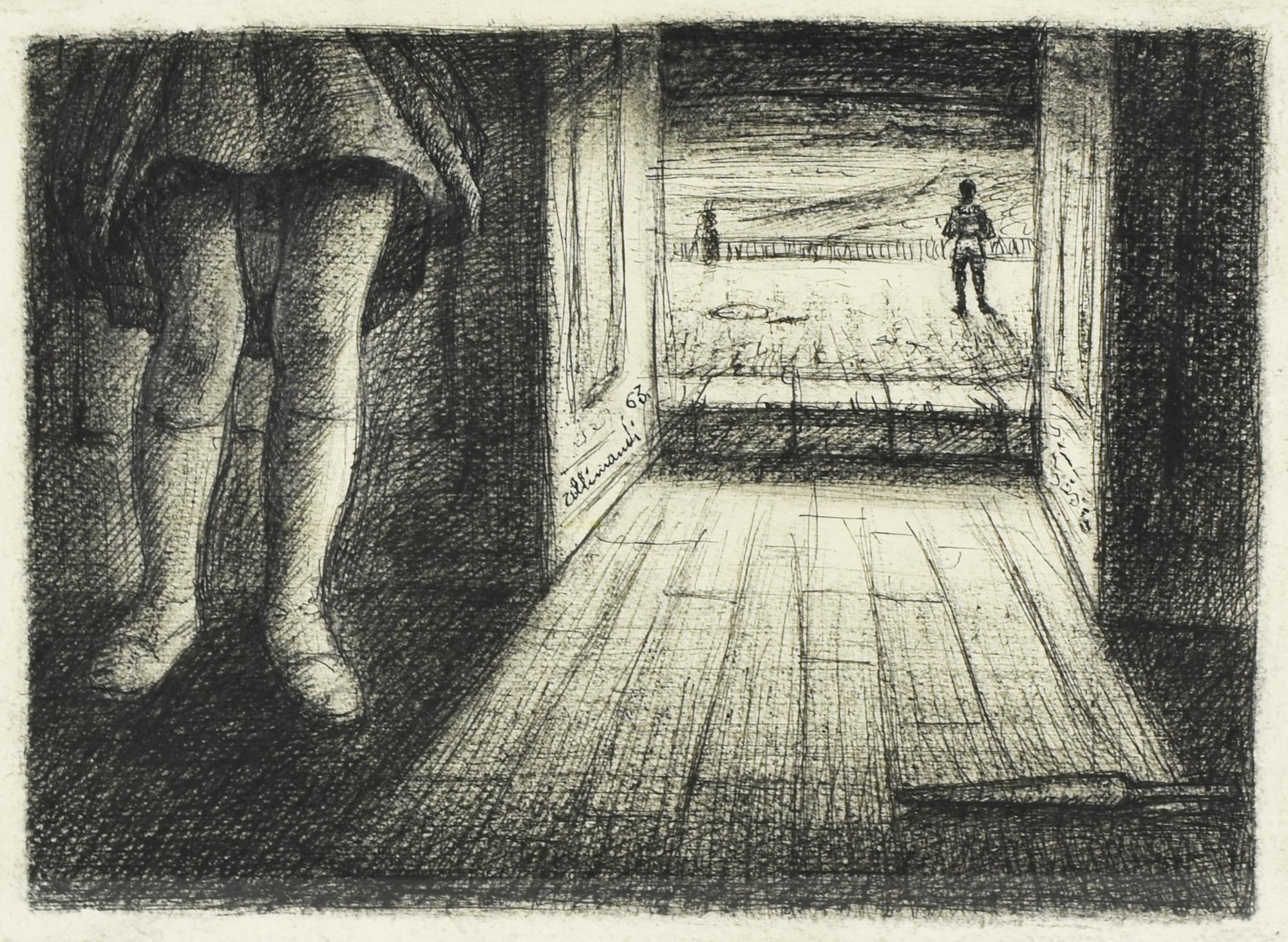 Enrico Allimandi PENSIERO DI DIFESA china e matita su carta, cm 23x31 firma e...