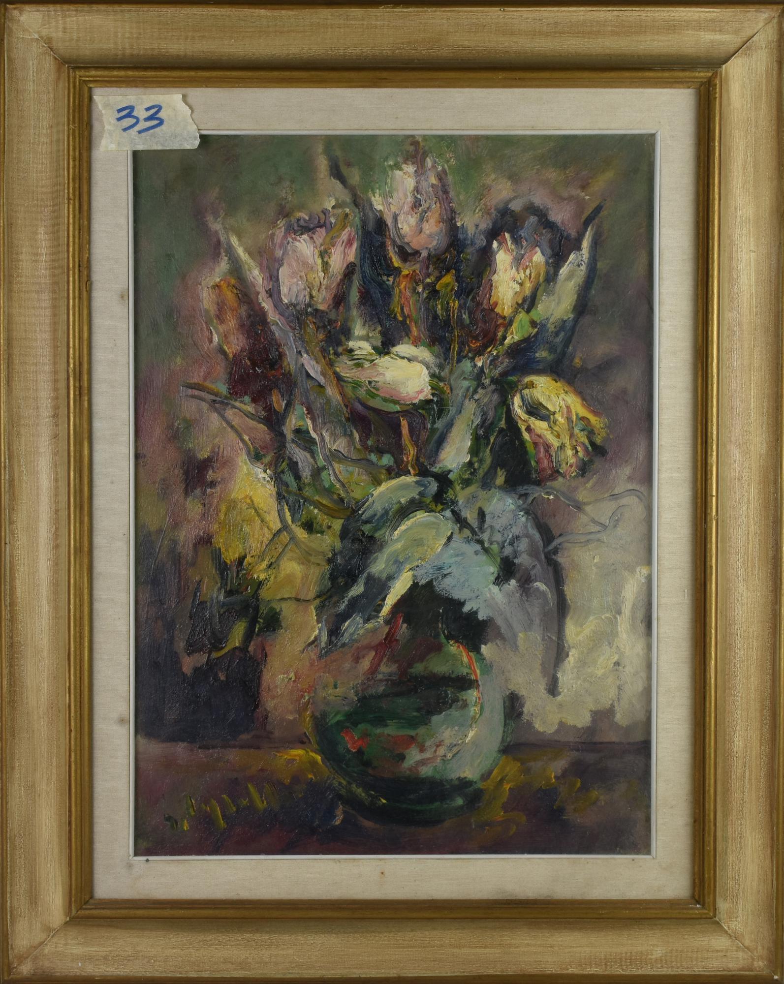 Ignoto VASO DI FIORI olio su tela, cm 70x50 firma sul retro: firma