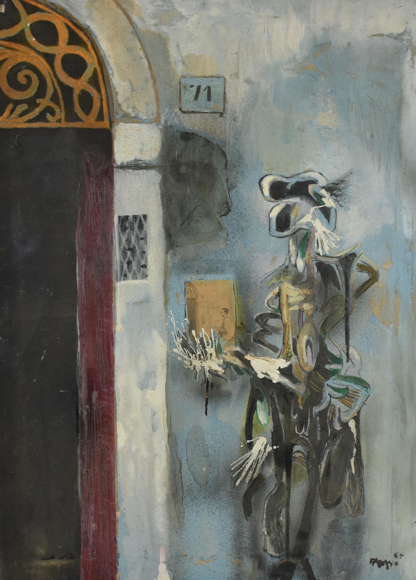Ignoto SENZA TITOLO olio e collage su tela, cm 103x74 firma e data eseguito...