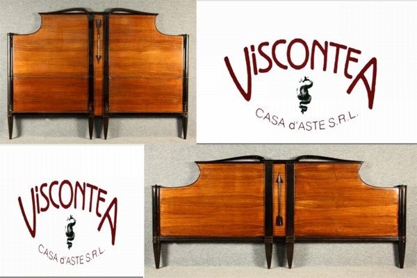 Firmato, datato. PONTI GIO' (attribuibile) - Milano, 1891-1979. Letto matrimoniale lastronato in noce con finiture in lacca nera. Mis. Lung. cm. 220 Alt. cm. 131 Prof. cm. 185 ca.