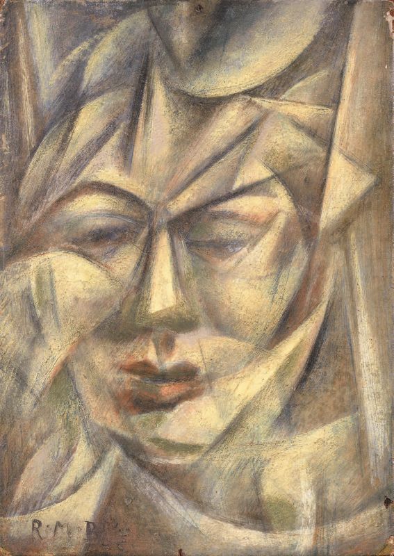 Roberto Marcello (Iras) Baldessari Innsbruck 1894 - Roma 1965 Volumi di un volto di donna, 1914-15 ca. Olio su cartoncino, cm. 31x22 Sigla in basso a sinistra: R.M.B. Certificato su foto Archivio Unico per il catalogo delle opere futuriste di Roberto Marcello Baldessari, Rovereto, 6 febbraio 2012, con n. B15-78.