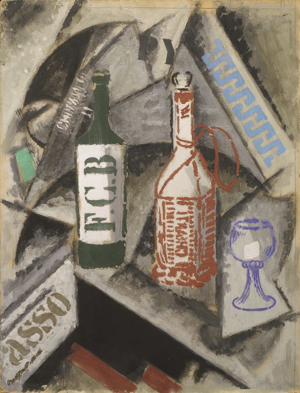 Ardengo Soffici Rignano sull'Arno (Fi) 1879 - Vittoria Apuana (Lu) 1964 Trofeino, (1948) Tempera su cartone, cm. 65,1x50,2 Al verso: etichetta e due timbri Galleria del Naviglio, Milano: timbro Galleria del Naviglio, Milano, con n. 2131 e firma Cardazzo: timbro Galleria Annunciata, Milano, con n. 6776. Storia Raccolta Gualino, Roma; Collezione privata Certificato su foto di Luigi Cavallo, Milano, 13 febbraio 1979. Bibliografia Giuseppe Ungaretti, Pittura contemporanea, Cappelli, Bologna, 1950, n. 58.