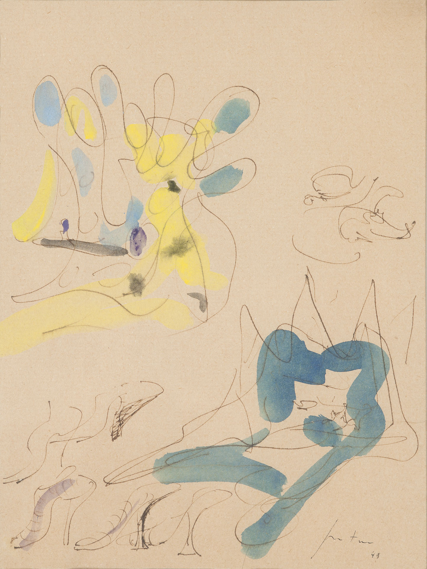 Lucio Fontana (Rosario di Santa Fè 1899 – Varese 1968) Senza titolo, 1949;Inchiostro e acquarello blu e giallo su carta, 28 x 21 cm,