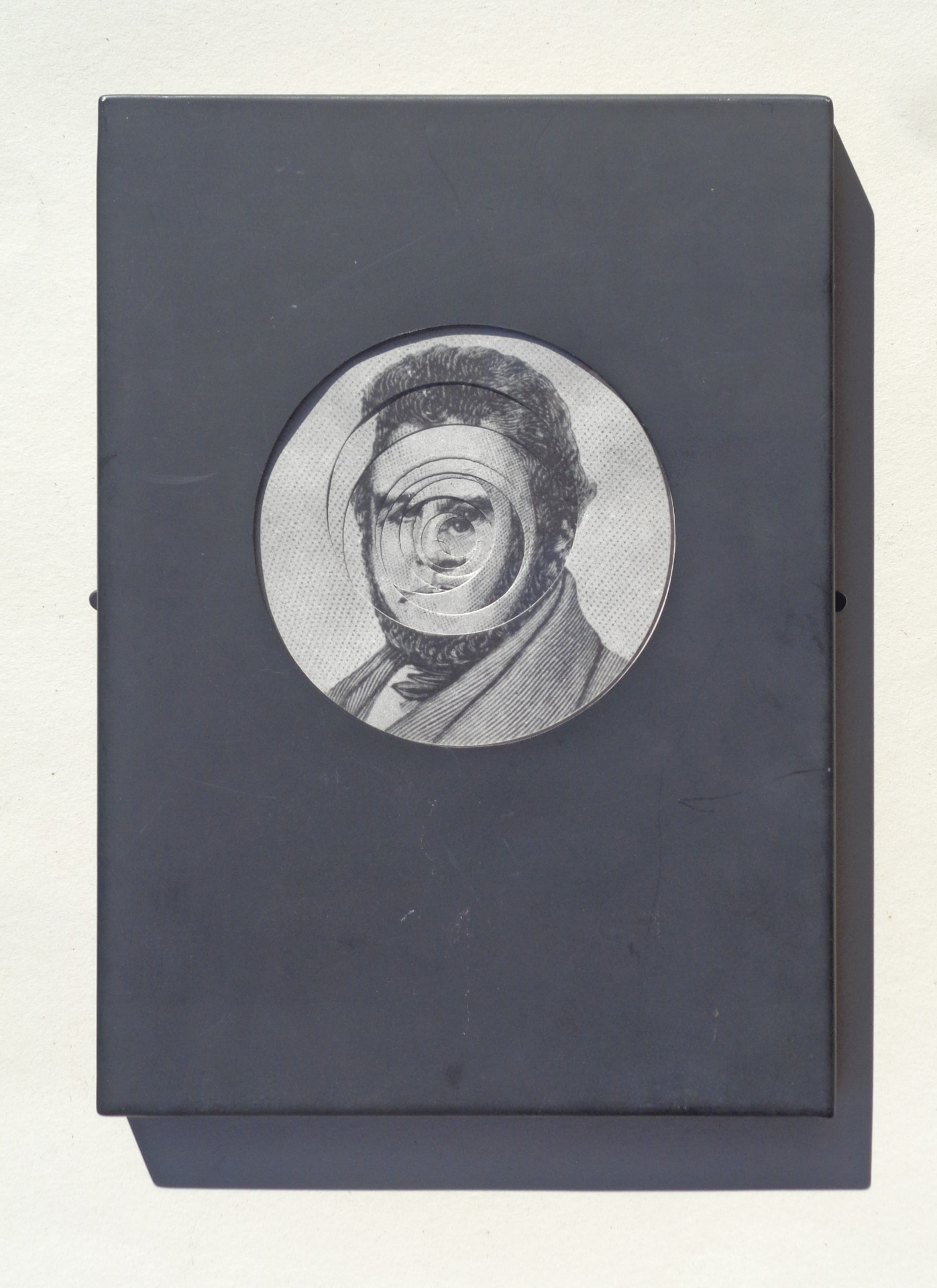 Pol Bury (1922 – 2005) Ritratto cinetico, Anni ‘60;Incisione su cartoncino, metallo, 36 x 26 cm