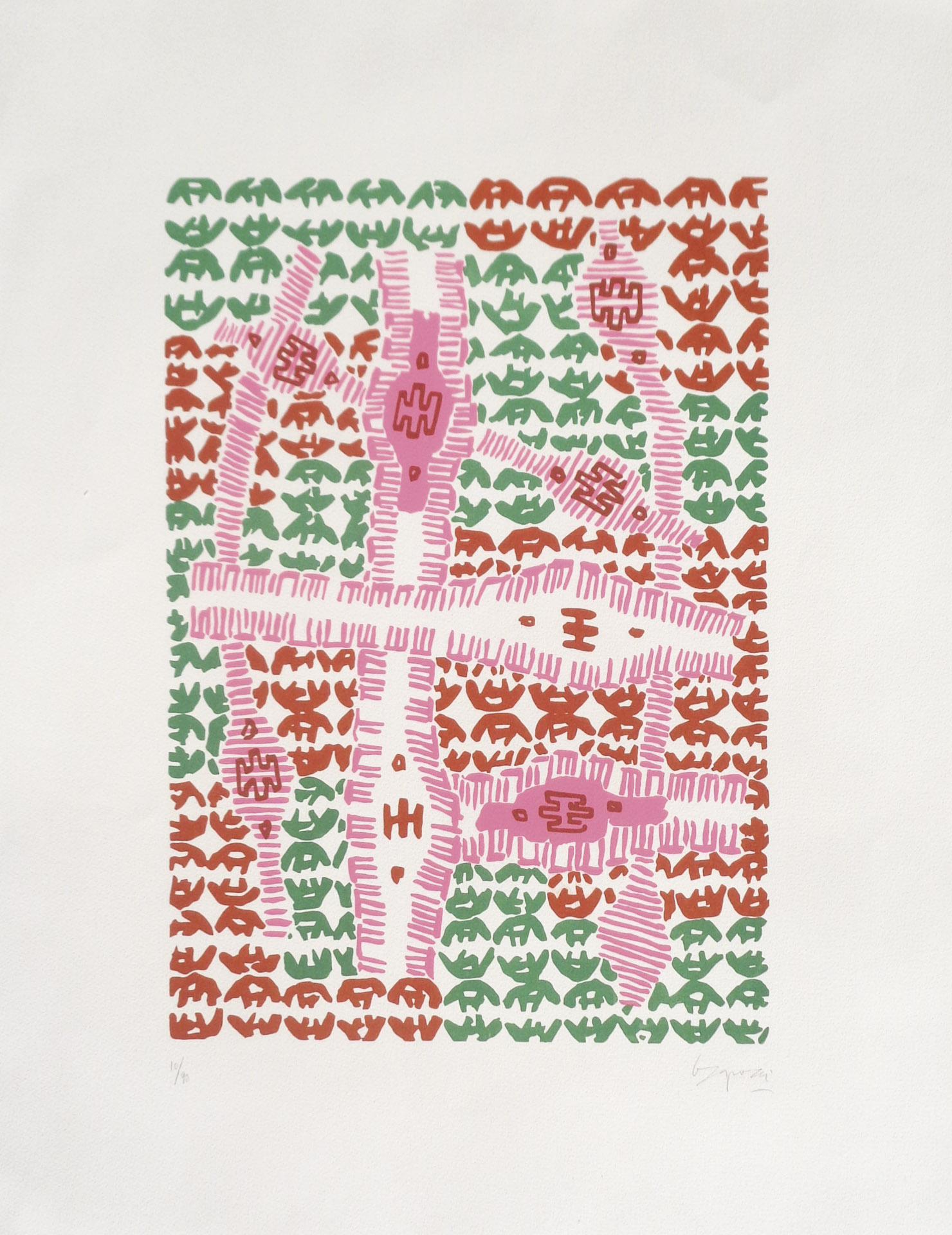 Giuseppe Capogrossi (Rom/Roma 1900 – 1972) Senza titolo;Litografia a col., 73,5 x 57 cm, piccolo