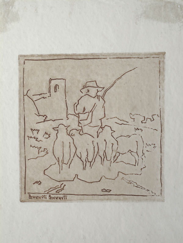 Lotto 135 | Benvenuto Benvenuti (Livorno, 1881 - 1959) PASTORE Punta secca, cm. 28,5x22...