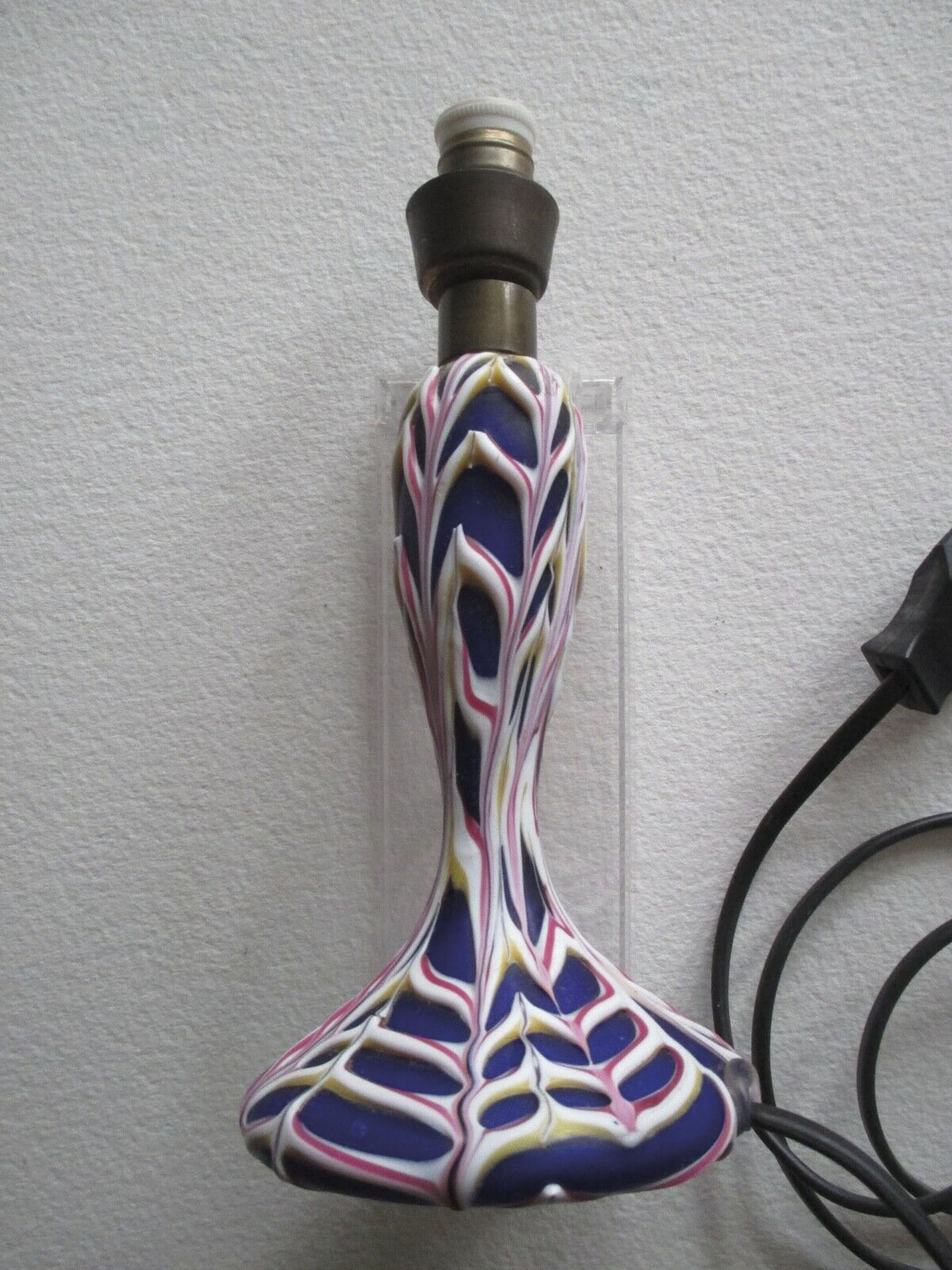 Fratelli Toso Murano Rara lampada da tavolo, 1910 circa;in vetro blu a decoro fenicio policromo 14,5