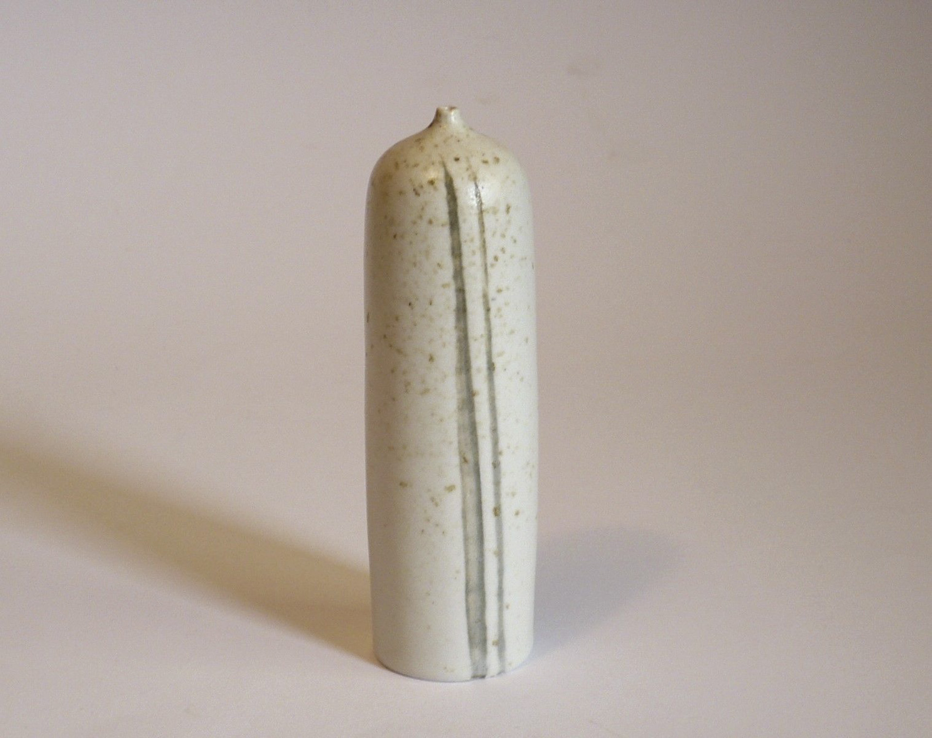 Dorothee Colberg Tjadens (1922 – 2004) Lacrimatoio, Anni ‘80;in gres porcellanato a smalti bianchi ocra e grigi, h. 16 x 4,7 cm, di rara fattura, in perfette condizioni