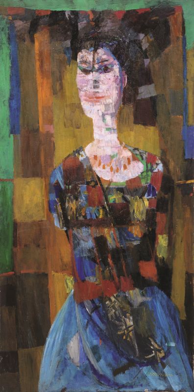 Bruno Cassinari Piacenza 1912 - Milano 1992 Figura, 1957 Olio su tela, cm. 120x60 Firma e data in basso a destra: Cassinari / 57; firma, data e titolo al verso sulla tela: Cassinari / 57 / "Figura"; sul telaio: etichetta Galleria La Bussola, Roma, con n. 0106: timbro Galleria Gissi, Torino, con n. 6766: etichetta Galleria Gissi, Torino, Mostra Bruno Cassinari, con n. 6766: etichetta Galleria d'Arte Cocorocchia, Milano. Storia Galleria La Bussola, Roma; Galleria Gissi, Torino; Galleria Il Mappamondo, Milano; Collezione privata, Milano; Collezione privata Certificato su foto Catalogo Generale dell'Opera di Bruno Cassinari, Milano, 20.3.2003, con n. 785/C564. Bibliografia Marco Rosci, Cassinari. Catalogo generale dei dipinti volume primo, opere 1930-1961, Electa, Milano, 1998, pp. 254, 255, n. 1957 45.