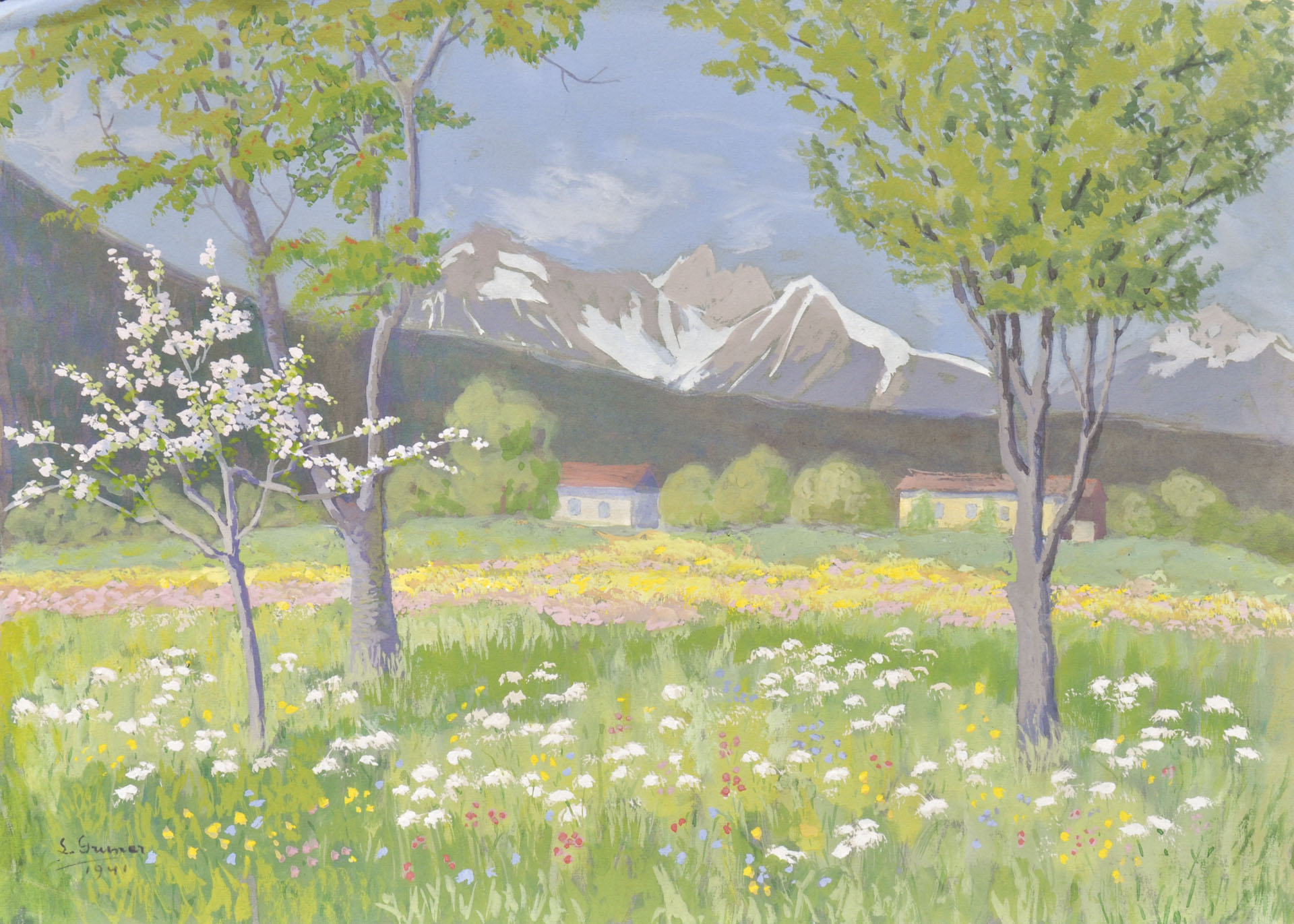 Lila Gruner (Guntramsdorf 1870 –Wien/Vienna 1950) Prato primaverile presso Merano, 1941;Guazzo, 30,9 x 43,1 cm