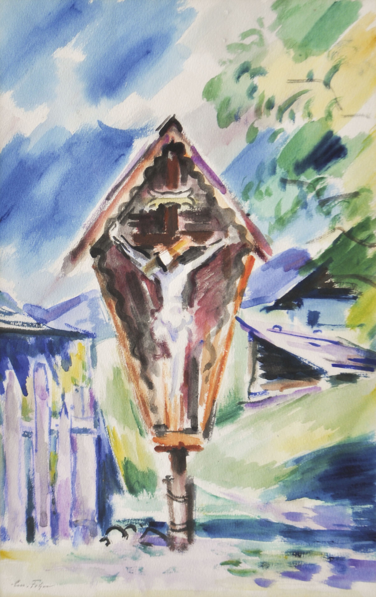 Emanuel Fohn (Klagenfurt 1881 – Bozen/Bolzano 1966) Edicola votiva in Alto Adige;Acquerello, 46,5 x 29,5 cm, in cornice