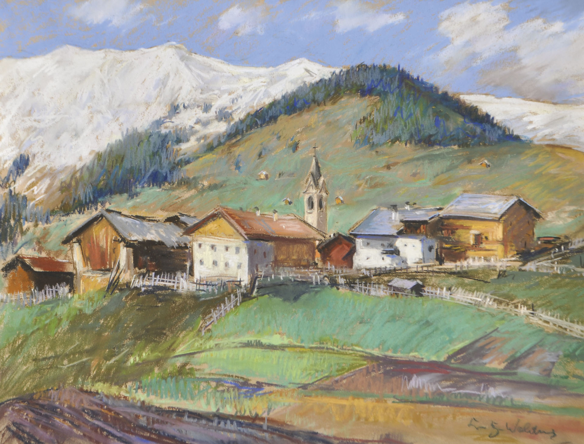 Erwin Lutz- Waldner (Meran/Merano 1912 – Innsbruck 1975) Serfaus;Pastell, 48...