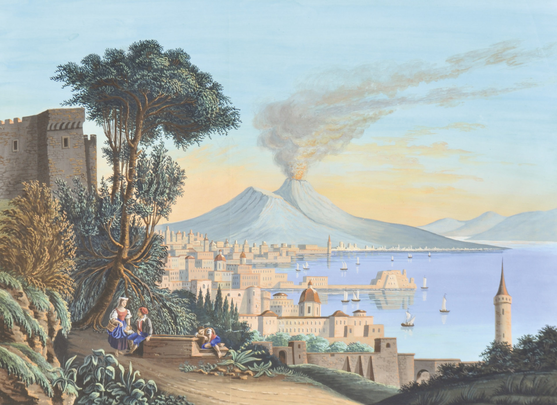Johann Nepomuk Franz Lauterer (Wien/Vienna 1700 – 1733) Napoli;Tempera su carta, 55 x 72,5 cm, piccoli strappi laterali, leggera piega