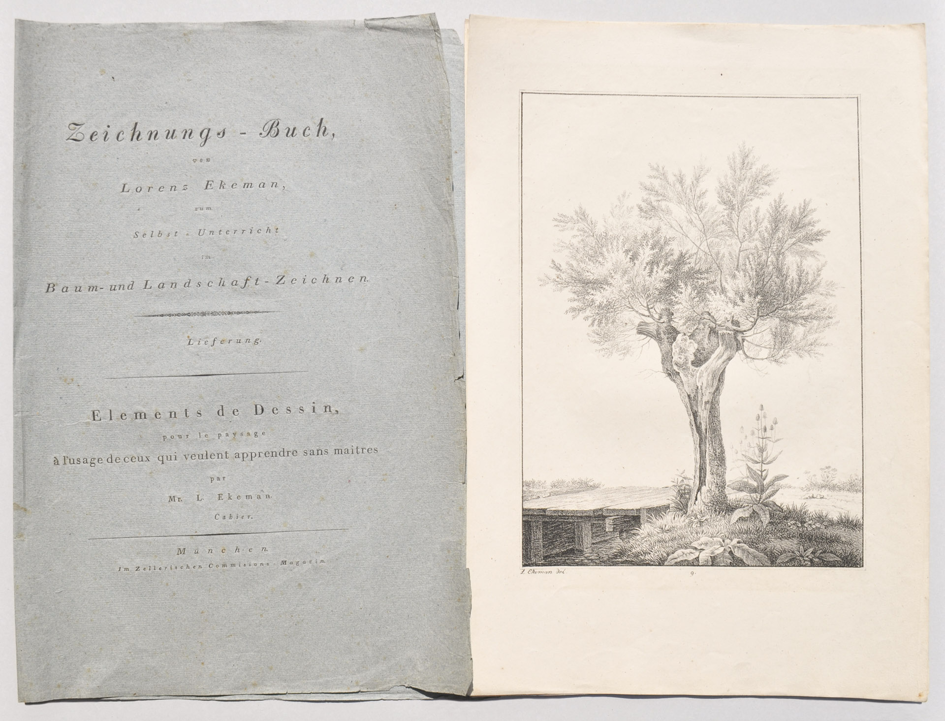 Lorenz Ekeman-Allesson (Schweden/Svezia 1791 -Stuttgart/Stoccarda 1828) Album da disegno, 1820 circa;per studio autodidattico disegno di alberi e
