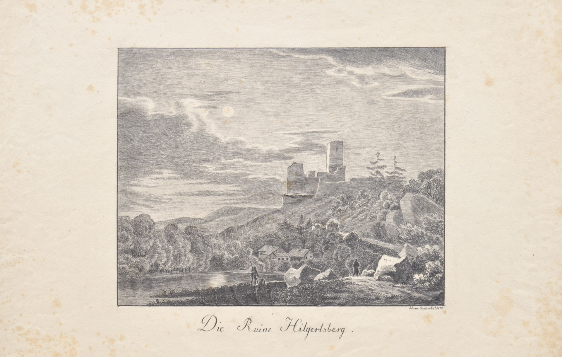 Johanna von Isser-Großrubatscher (Neustift/Novacella 1802 – Innsbruck 1880) La rovina Hilgartsberg (presso Passau), 1818;Matita, 29,7 x 45 cm, piccole macchie