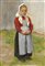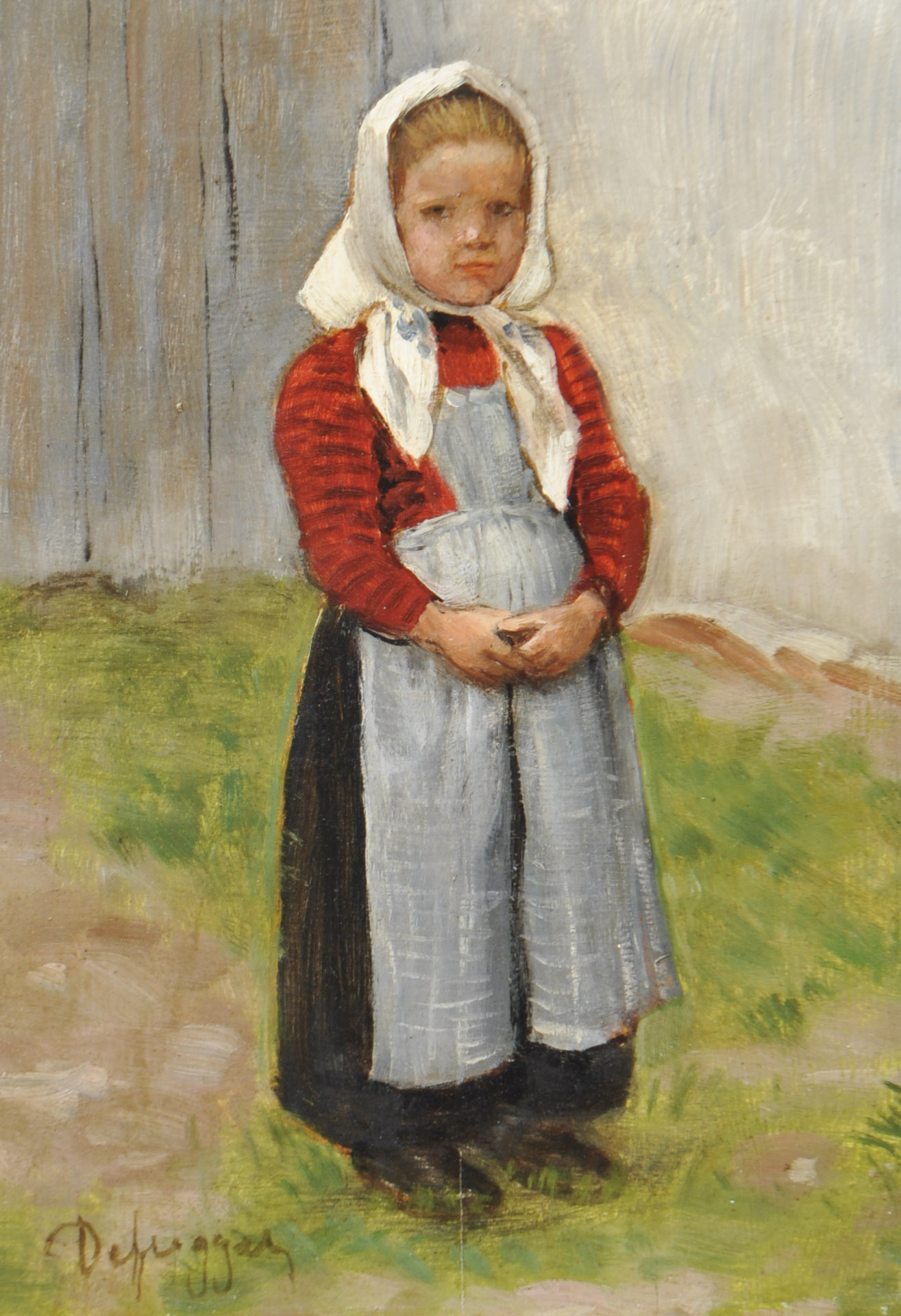 Franz von Defregger (Stronach, Osttirol 1837 – München/Monaco di Baviera 1921) Ragazza all‘aperto;Olio su tela, 24,5 x 19,7 cm, in cornice