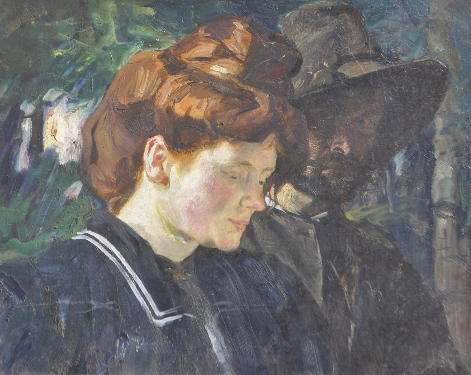 Thomas Riss (Haslach, Stams 1871 – Innsbruck 1959) Doppio ritratto;Olio su cartone, 49,5 x 61,8 cm, in cornice