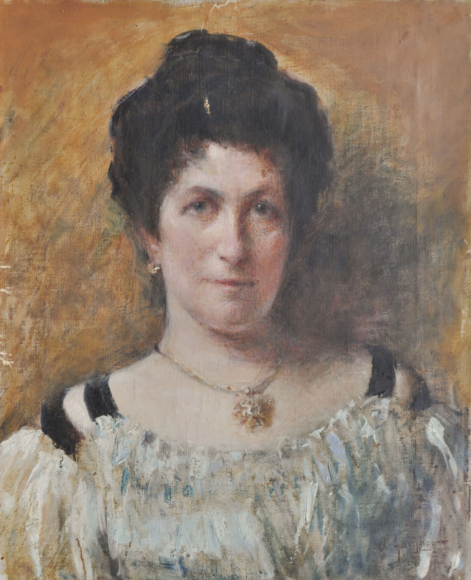 Orazio Gaigher (Levico 1870 – Meran/Merano 1938) Ritratto femminile;Olio su tela, 54 x 43,8 cm, mancanze di colore