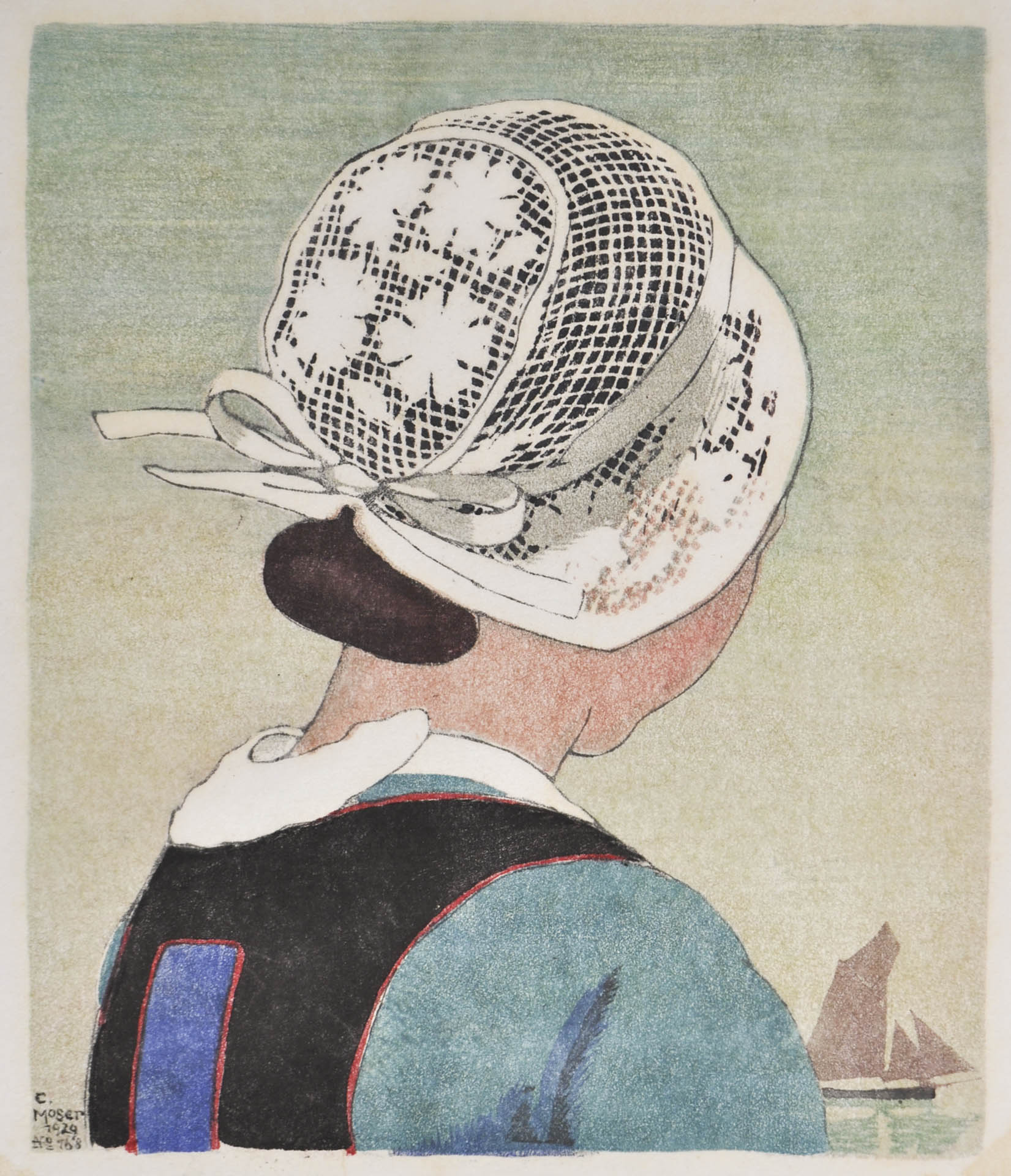 Carl Moser (Bozen/Bolzano 1873 – 1939) Ragazza bretone, 1929;Xilografia a colori, 29,5 x 24,7 cm, in cornice
