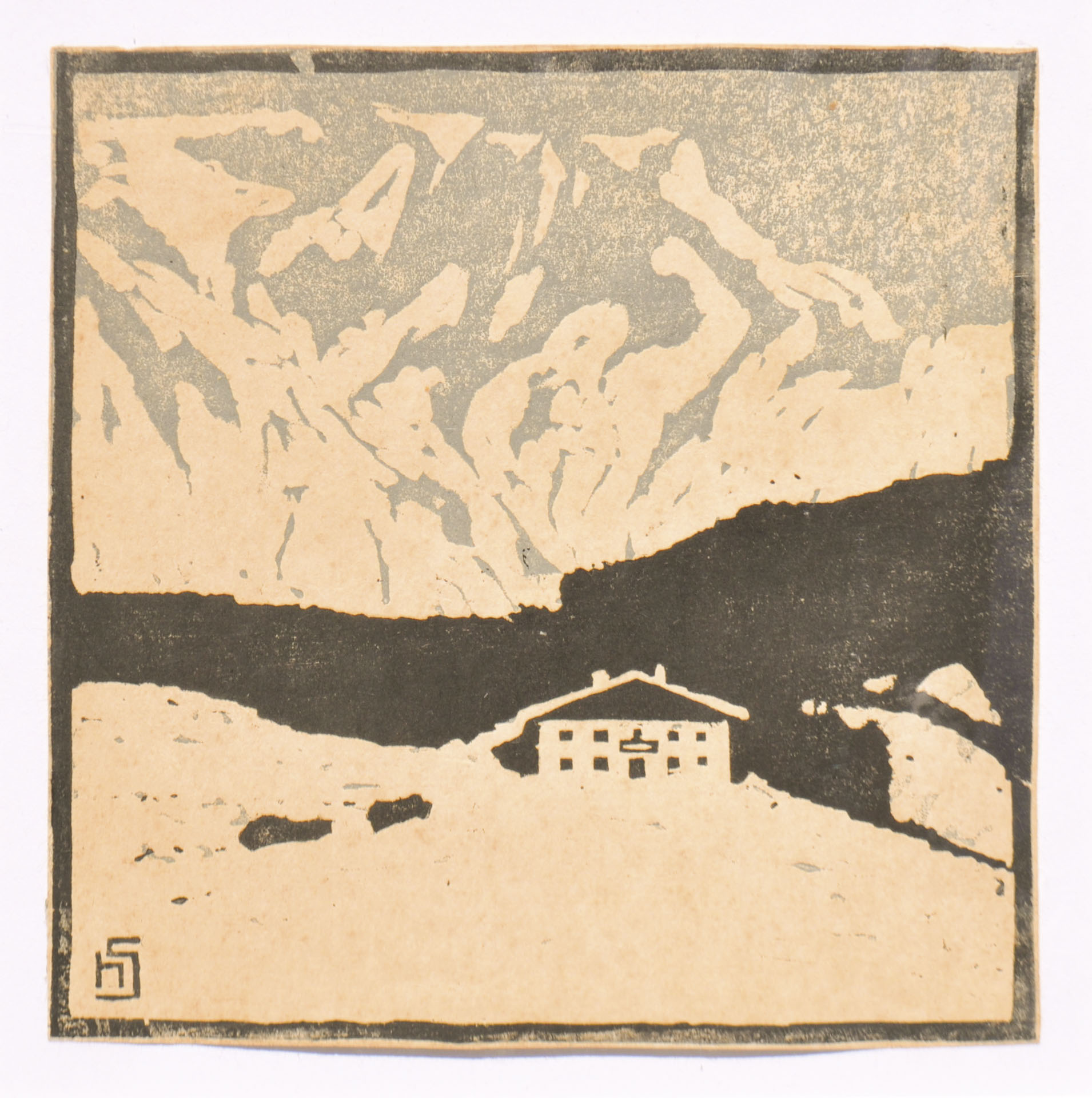 Heinrich Schröder (Krefeld 1891 – Innsbruck 1942) Paesaggio alpino invernale;Xilografia a colori, 16 x 16 cm