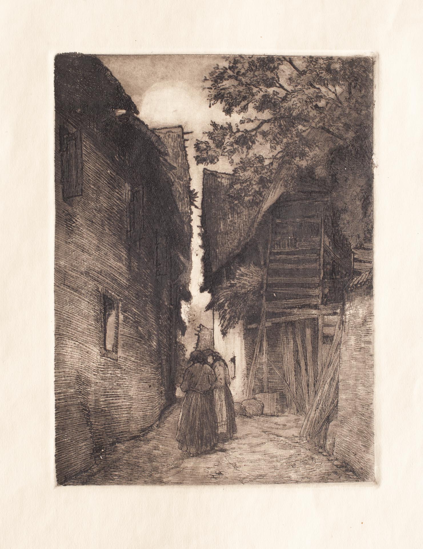 Karl Pferschy (Deutschlandsberg 1888 – Bozen/Bolzano 1930) Vicolo nelle Giudicarie, 1925;Acquaforte, 31,5 x 23,5 cm (lastra), in cornice
