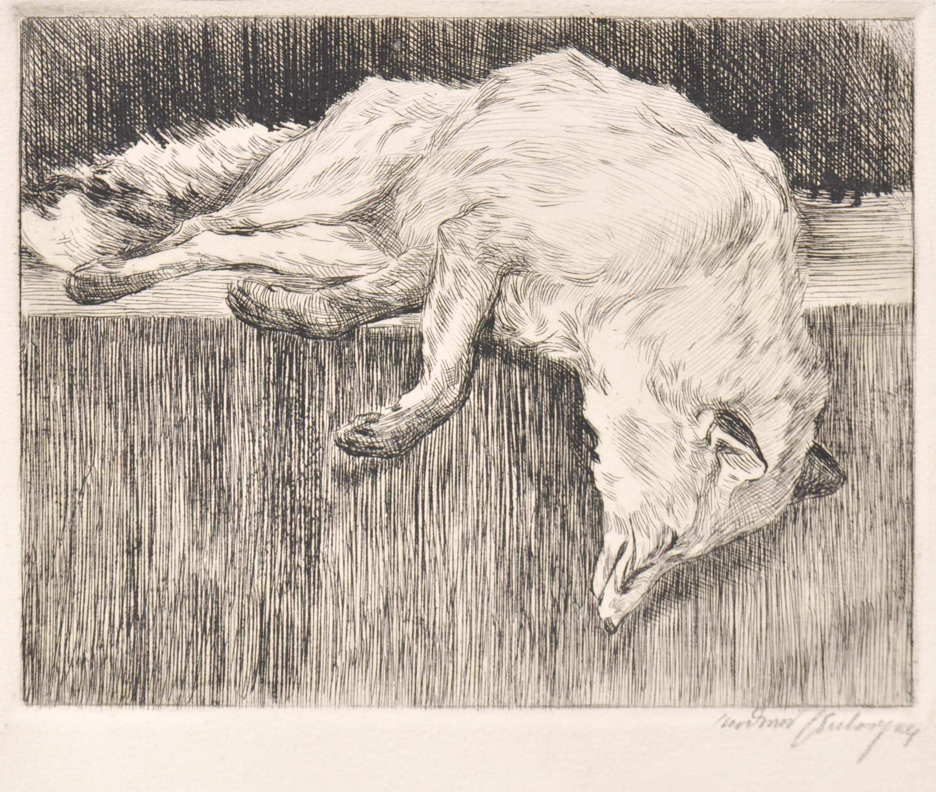 Andreas Einberger (Kamsach 1878 – Telfs 1952) Volpe morta;Acquaforte, 13,2 x...