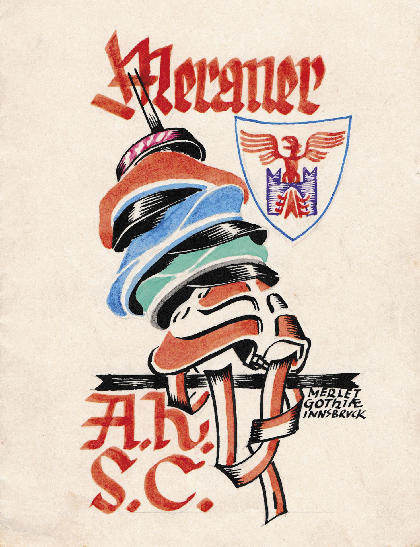 Erwin Merlet (Wien/Vienna 1886 – Bozen/Bolzano 1939) Bozzetto pubblicitario “Meraner A. K. S. C.“, 1925 ca.;China e acquerello