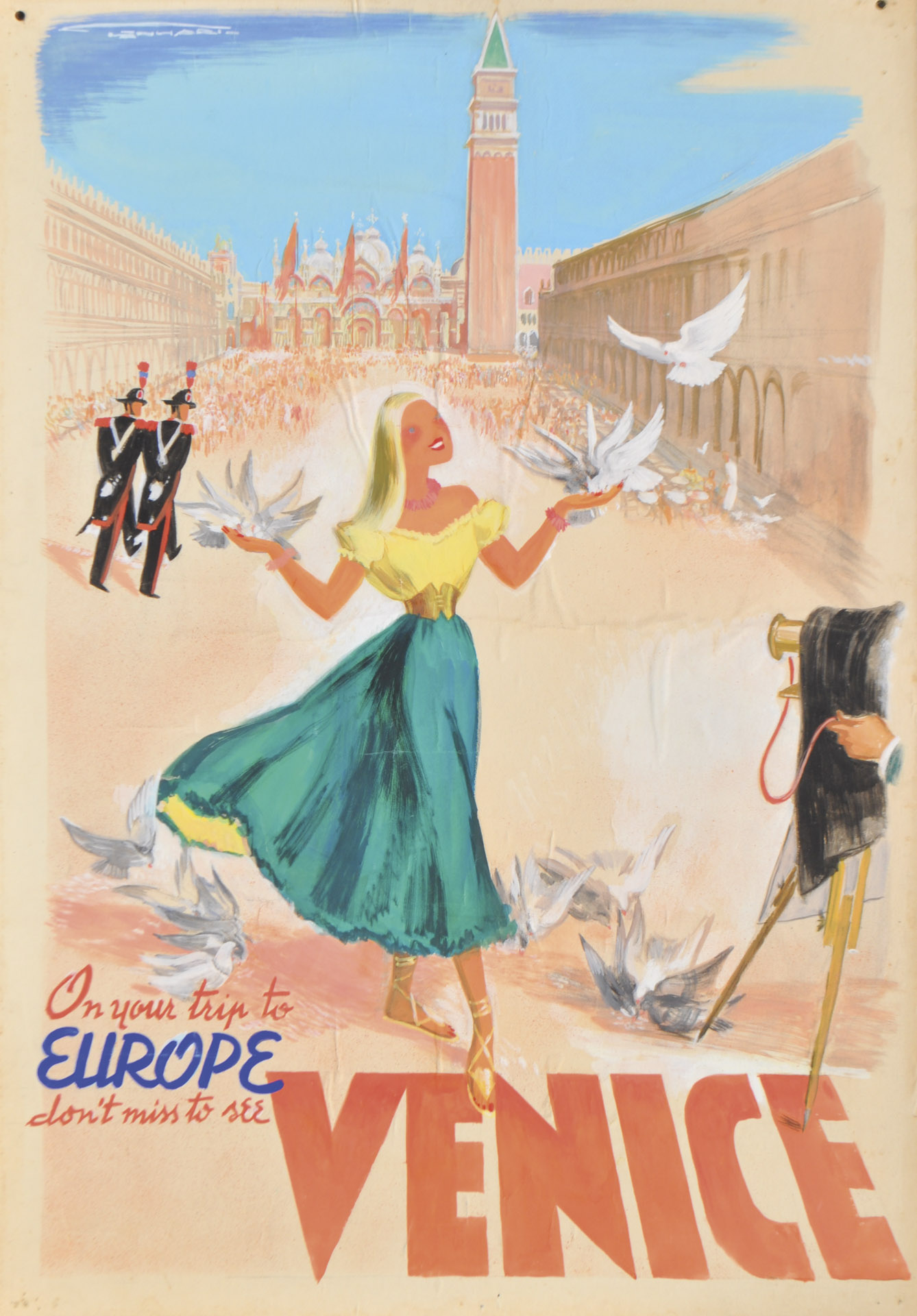 Franz Lenhart (Bad Häring 1898 – Meran/Merano 1992) BozzettonOn your trip to Europe don’t miss to see Venice“, um 1950;Tempera su carta su cartone, 99,5 x 69,5 cm