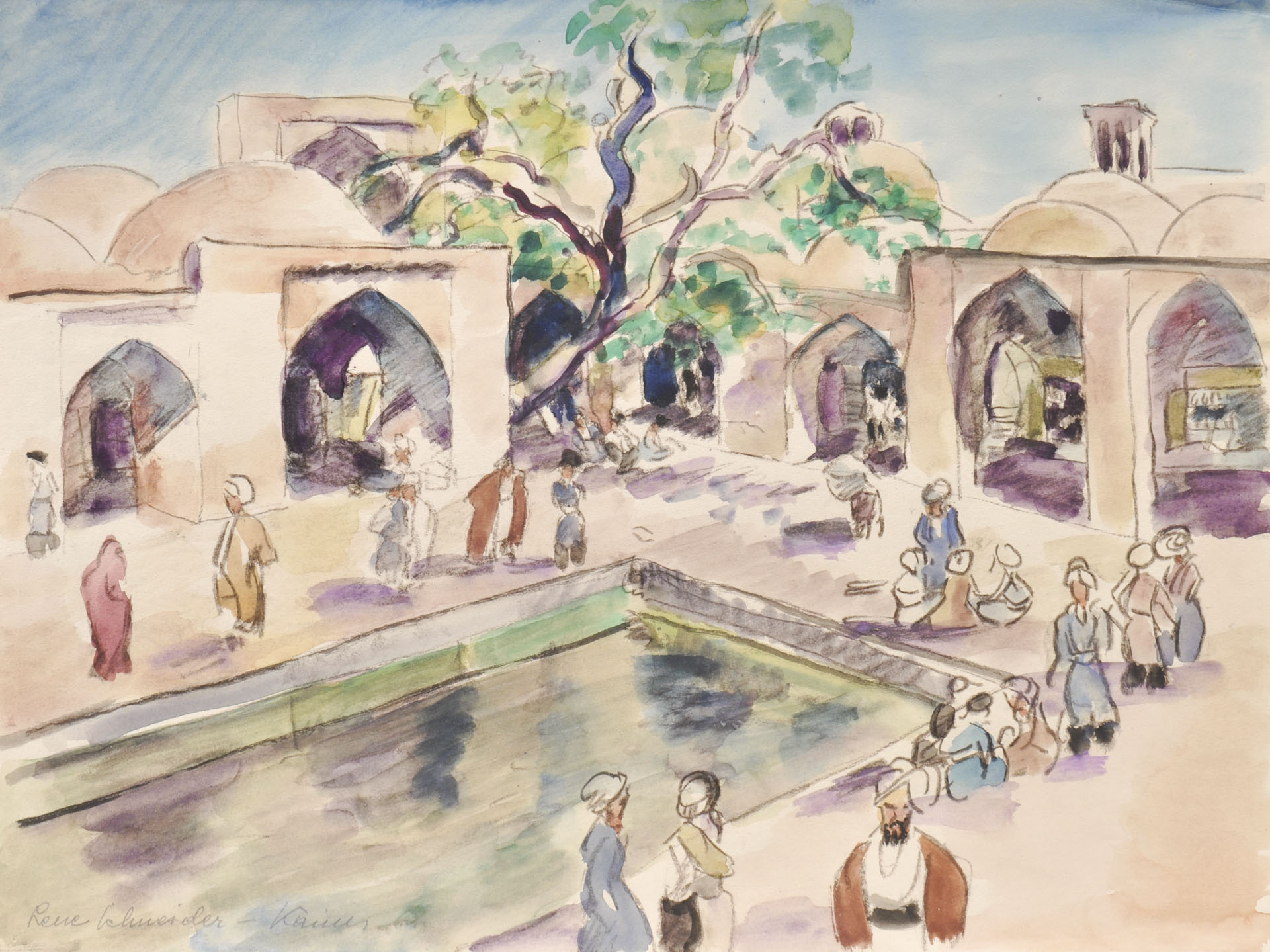 Lene Schneider-Kainer (Wien/Vienna 1885 – Cochabamba, Bolivien/Bolivia 1971) Cortile interno orientale, 1927 ca.;Carboncino, acquerello, 36,5 x 48,5 cm