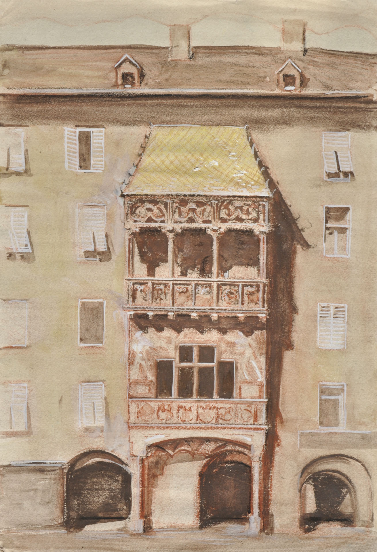 Carl Heinrich Walter Kühn (Innsbruck 1895 – 1970) Il Tetto d’oro a Innsbruck;Guazzo, sanguigna, 44,2 x 30 cm