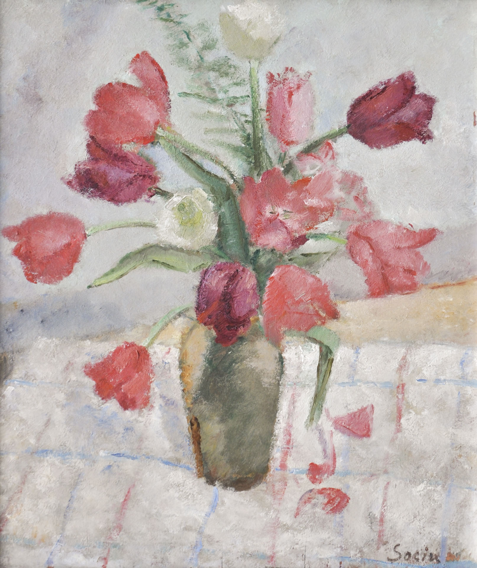 Tullia Socin (Bozen/Bolzano 1907 – 1995) Tulipani;Sul retro: ritratto femminile