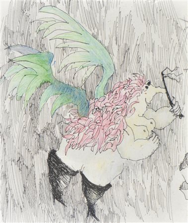Bert Breit (Innsbruck 1927 – 2004) Cantante di Wagner, 1980 ca.;China, matite colorate, 12,8 x 15,5 cm
