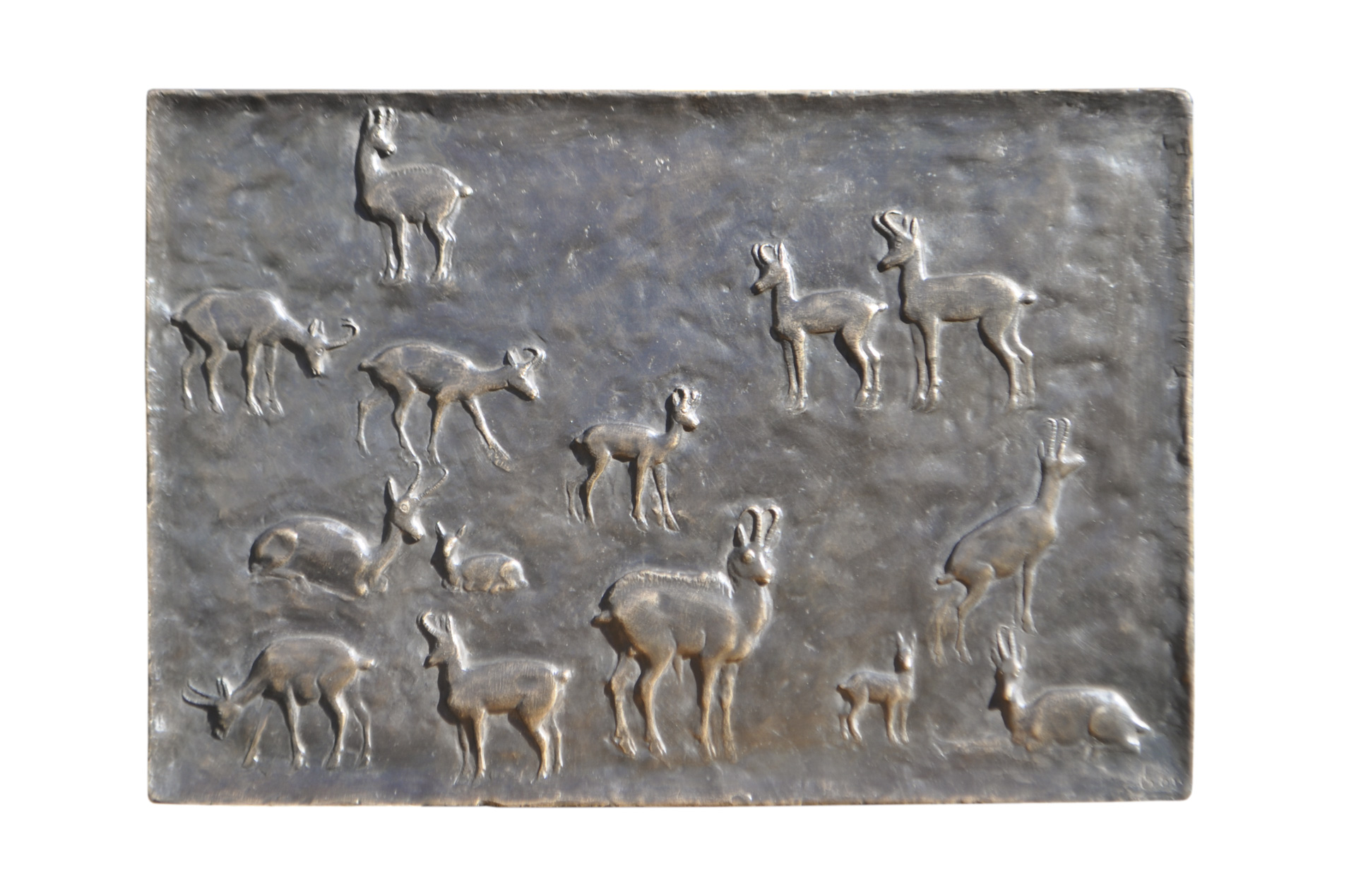 Friedrich Gurschler (Schnals/Senales 1923 – 2020) Camosci, 1963;Rilievo in bronzo, 41,7 x 61 x 3,5 cm