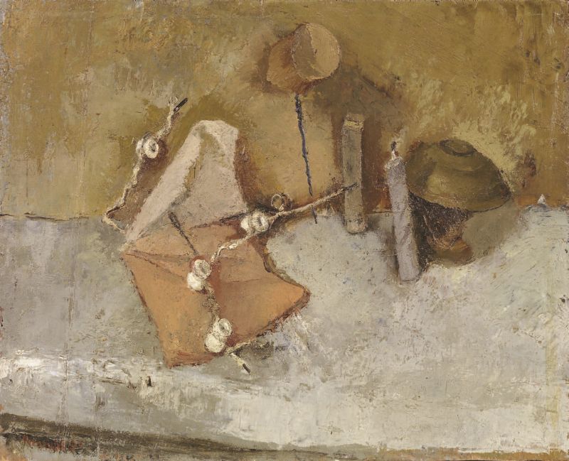 Fausto Pirandello Roma 1899 - 1975 Natura morta con oggetti elettrici, 1939 ca. Olio su tavola, cm. 31,8x39 Firma in basso a sinistra: Pirandello. Al verso: etichetta XI Mostra Sindacato B. A. - Roma 1940 - XVIII / Mercati Traianei, con firma dell'artista: timbro Municipio di Livorno / Casa della Cultura: etichetta Municipio di Livorno / Mostra "50 Artisti degli ultimi 30 anni" / n. cat. 51 / organizzata nel Salone della Casa della Cultura / di Livorno dal 11 gen. 1958 al 30 gen. 1958: etichetta Raccolta "Il Pergamo", Prato, con n. 091: etichetta Associazione Turistica Pratese / Mostra di Pittura Italiana Contemporanea / nelle collezioni di Prato / 7 - 30 settembre 1958, con n. 83: timbro Società dei Misoduli, Prato: etichetta Società dei Misoduli - Prato / Arte Contemporanea / nelle collezioni dei soci / febbraio - marzo 1961, con n. 74: etichetta Azienda Autonoma di Soggiorno e Turismo / Marina di Massa / mostra di pittura italiana contemporanea / 11 - 30 agosto 1959: due timbri Brigata Amici dell'Arte, Macerata: etichetta Amici dell'Arte - Macerata / Pittori d'oggi. Storia Collezione Il Pergamo, Prato; Collezione privata Esposizioni Pittura italiana Contemporanea nelle Collezioni di Prato, Prato, Associazione Turistica Pratese, 7 - 30 settembre 1958, cat. p. 75, n. 83, tav. 72, illustrato; Pittura Italiana Contemporanea (collezioni toscane), Marina di Massa, Azienda Autonoma di Soggiorno e Turismo, 1959, cat. p. 66, n. 1, tav. n.n. Bibliografia Guido Giuffré, Fausto Pirandello, Edizioni della Cometa, Roma, 1984, p. 93, tav. 53; Claudia Gian Ferrari, Fausto Pirandello, Leonardo/De Luca Editori,Roma, 1991, pp. 118, 119, n. 147; Claudia Gian Ferrari, Fausto Pirandello. Catalogo Generale, Mondadori Electa, Milano, 2009, p. 127, n. 200.