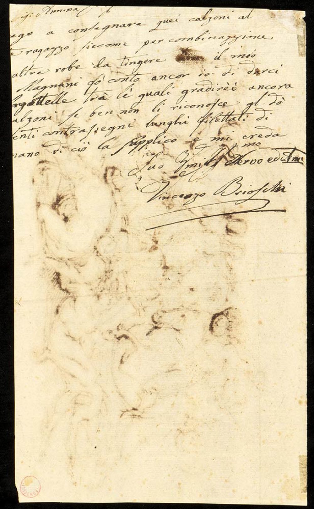 Il foglio reca al retro uno scritto parzialmente leggibile firmato Vincenzo Brioschi.