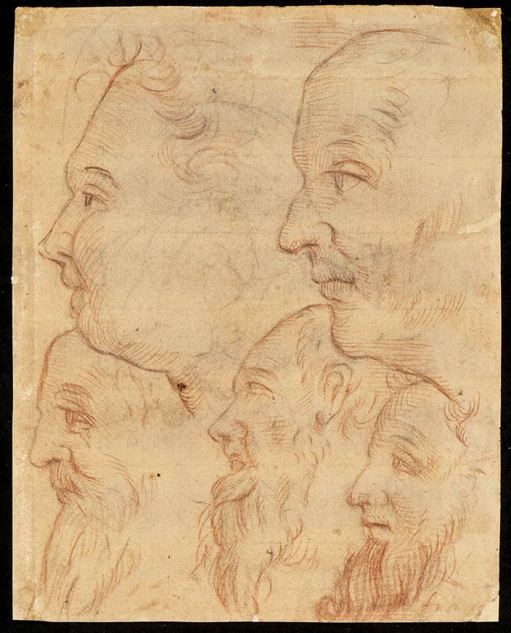 Recto: studio per volto di vecchio - Verso: cinque studi di teste di profilo