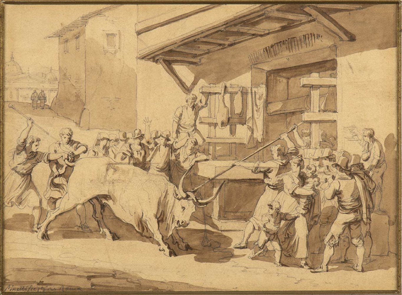 Il disegno reca firma in basso a sinistra: " PINELLI FECIT IN ROMA".