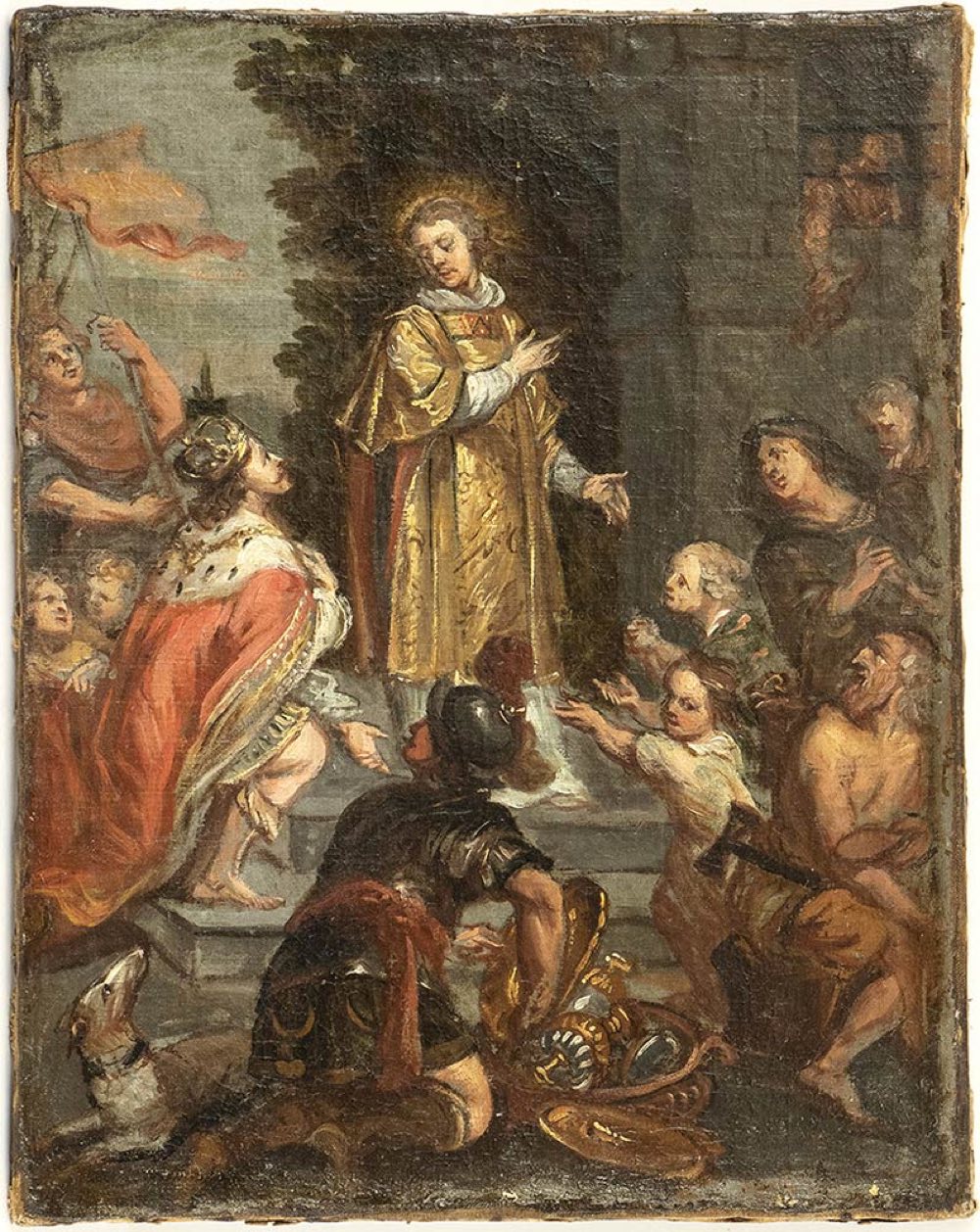 Sovrano reca offerte a santo vescovo con dalmatica