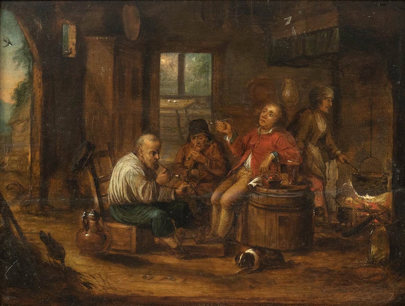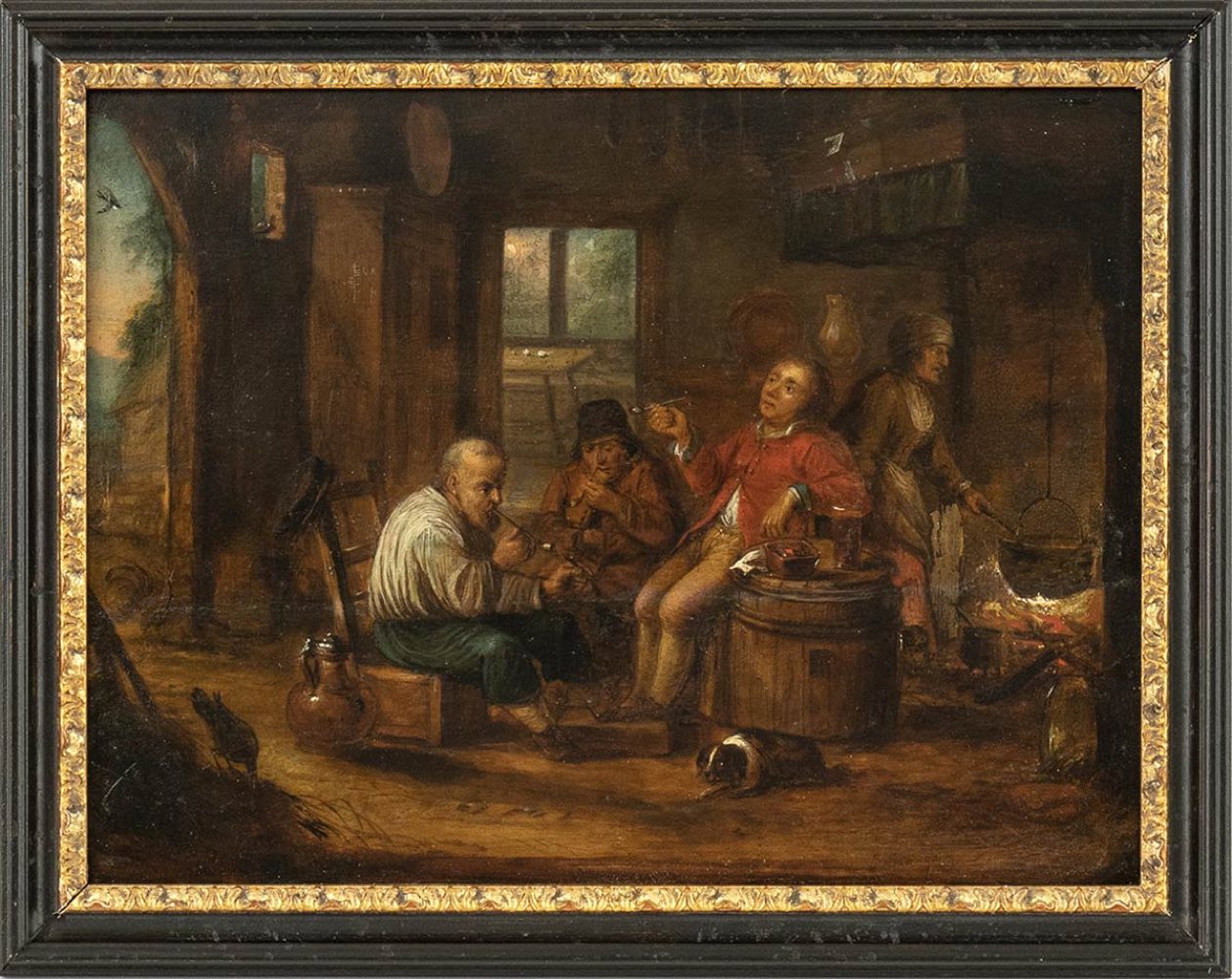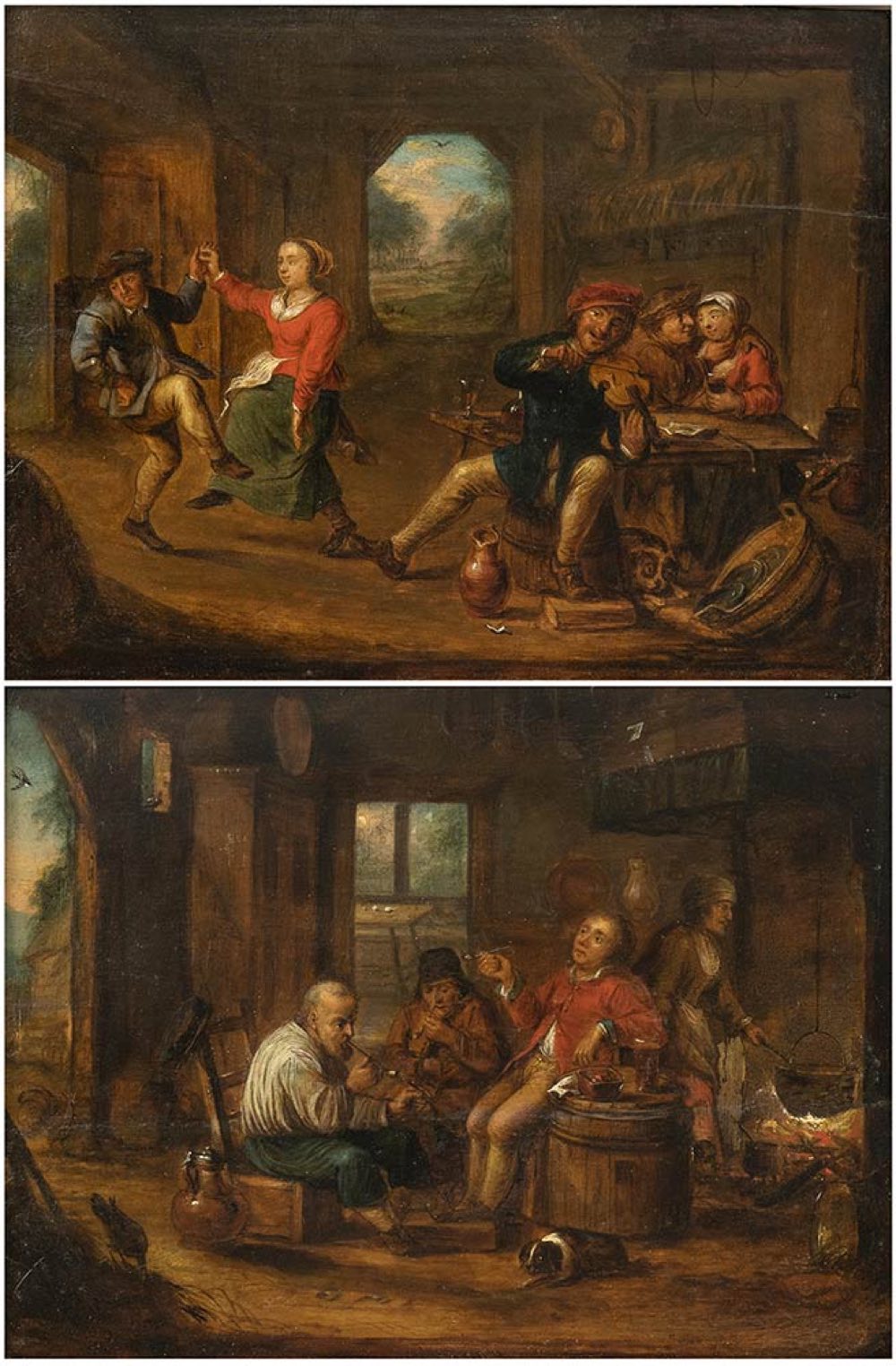 b) fumatori di pipa, coppia di dipinti.