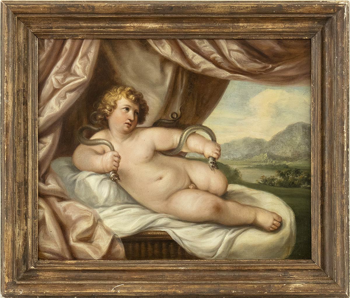 Ercole bambino strozza i serpenti mandati da Era per ucciderlo