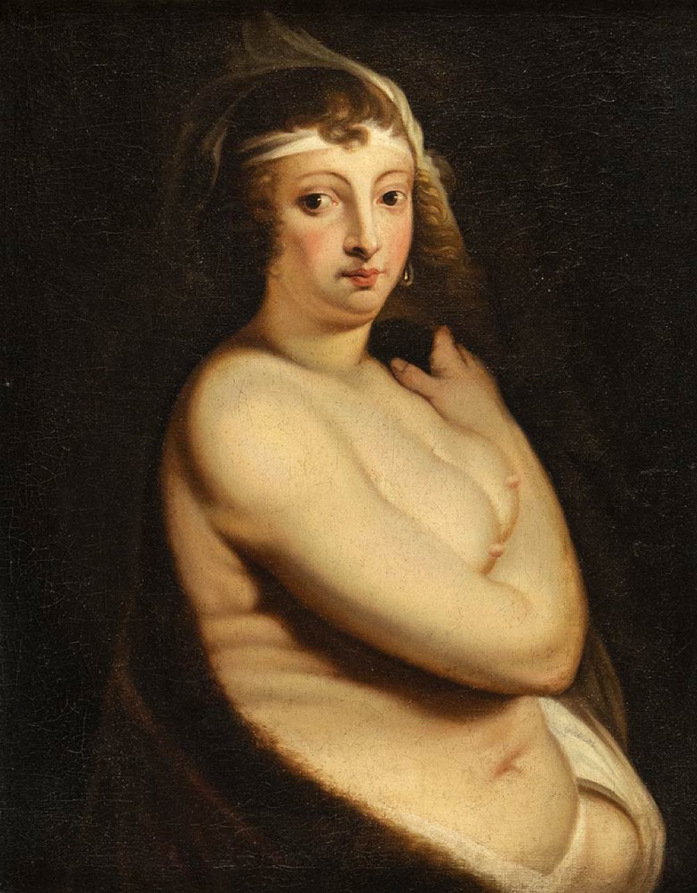 Il dipinto replica parzialmente, ma fedelmente, il celebre dipinto di Rubens raffigurante la moglie Helena Fourment a figura intera, oggi conservato presso il Museo Nazionale di Varsavia.